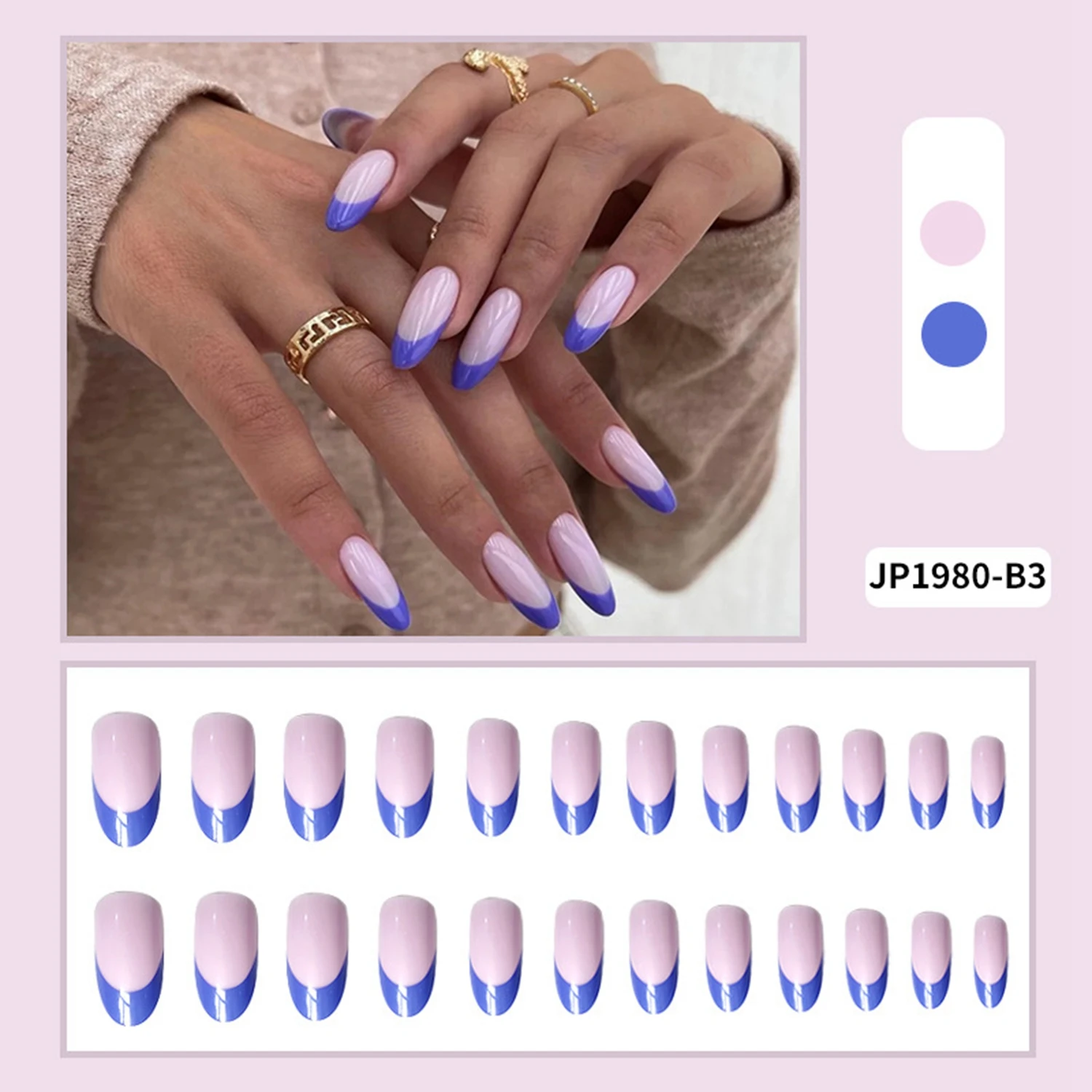 Накладные ногти, 24 шт.кор.ballerina, сине-фиолетовые, миндальные, пригодные для носки, на шпильках, французские накладные ногти, полное покрытие, накладные ногти