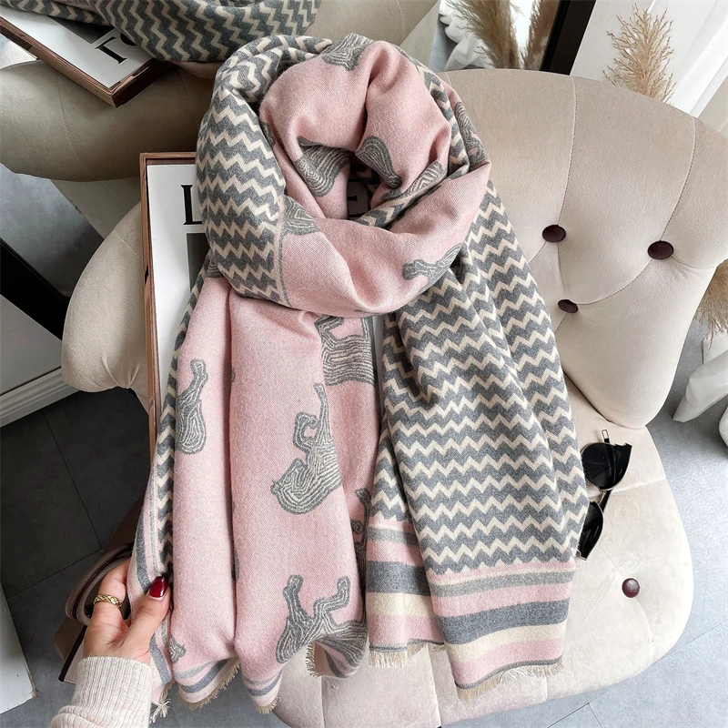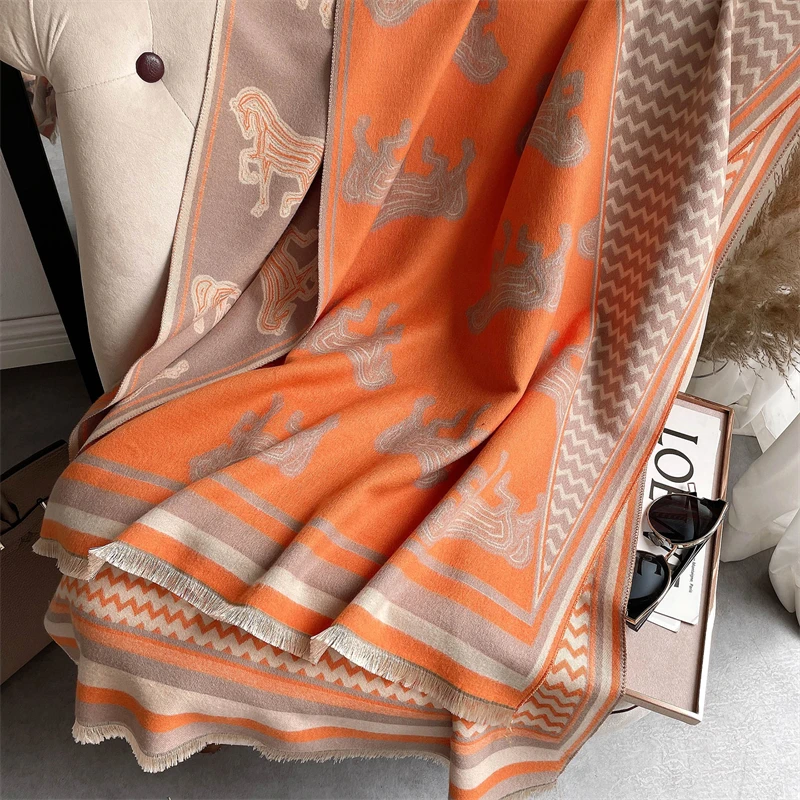 2021 зимний кашемировый шарф с принтом лошадей, женские новые толстые теплые шали с геометрическим узором, брендовые палантины, одеяло из пашмины