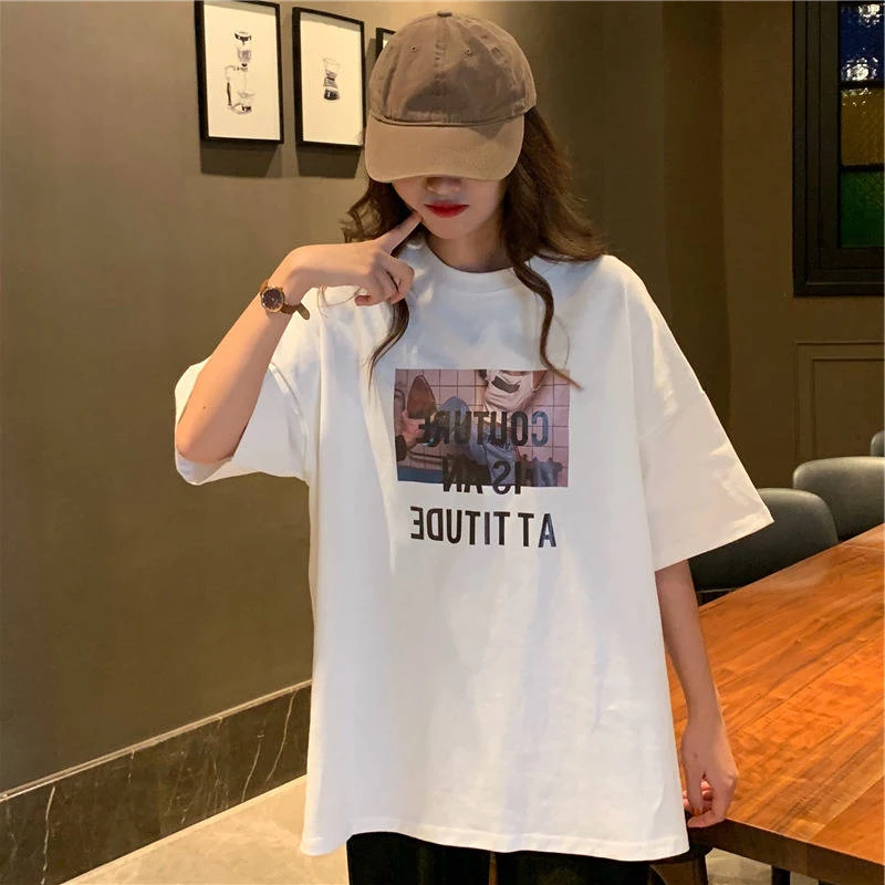 Футболка большого размера в стиле Harajuku, универсальная свободная...