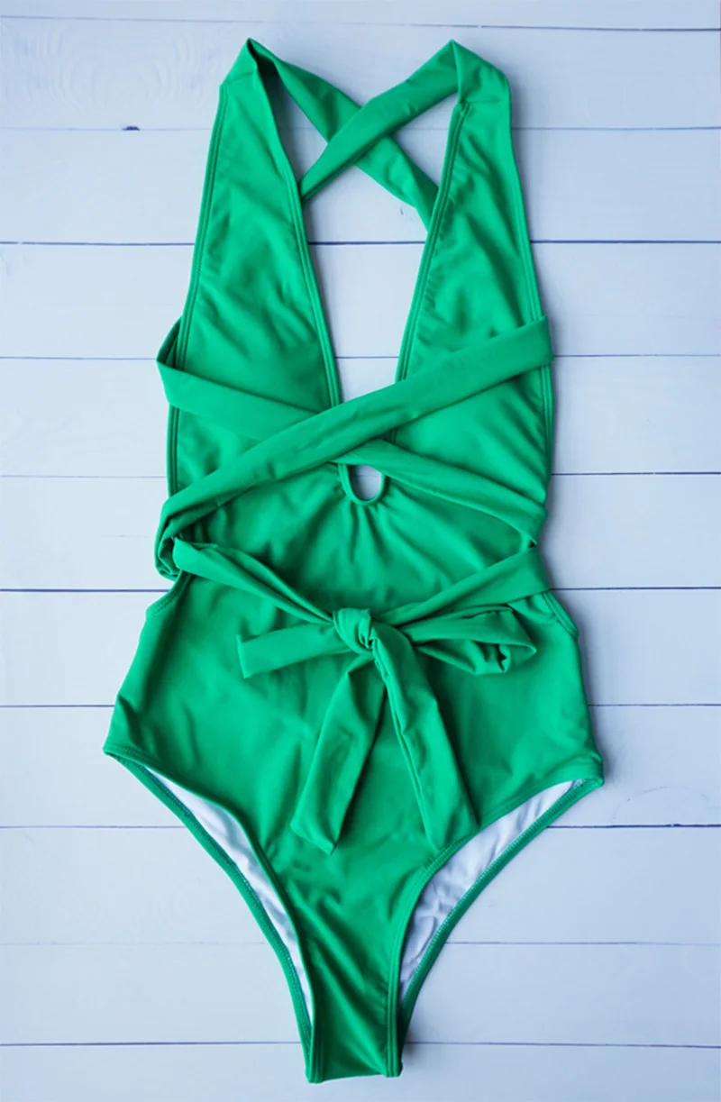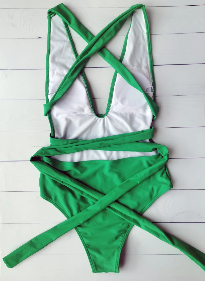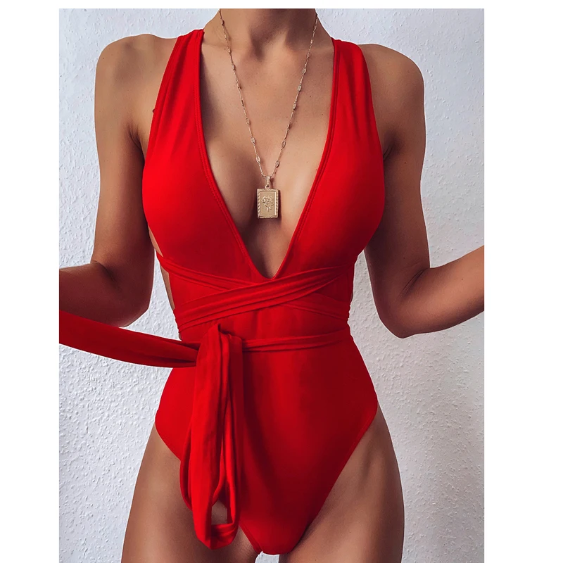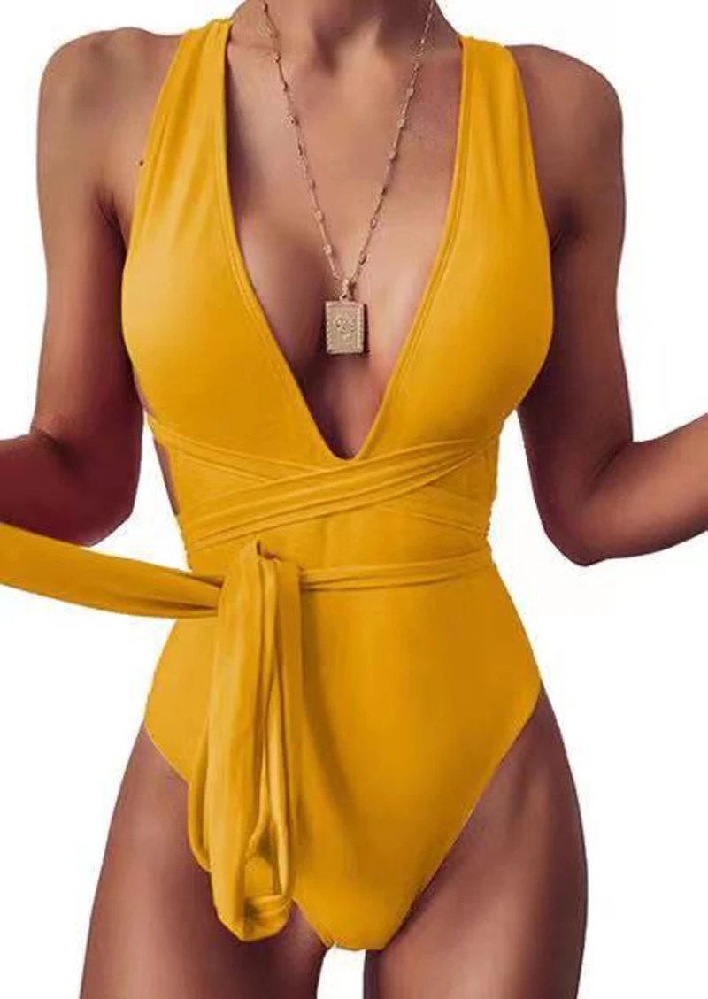 Соблазнительный цельный костюм, купальник с глубоким V-образным вырезом, Женское боди со шнуровкой, женский купальник со съемной подкладкой, 2021, однотонный монокини с несколькими завязками