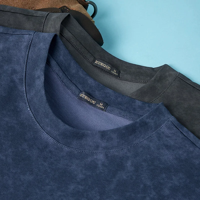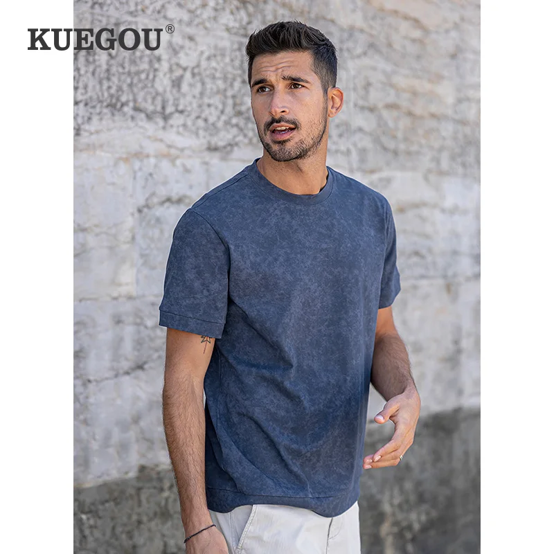 Мужская Винтажная Футболка KUEGOU, черная футболка в стиле ретро, выполненная из 2021 хлопка, с рисунком под масло, лето 100%