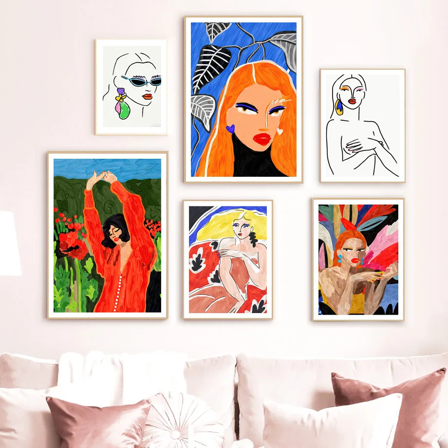 Абстрактные Фигурки девушек, скандинавские плакаты и принты на тело...