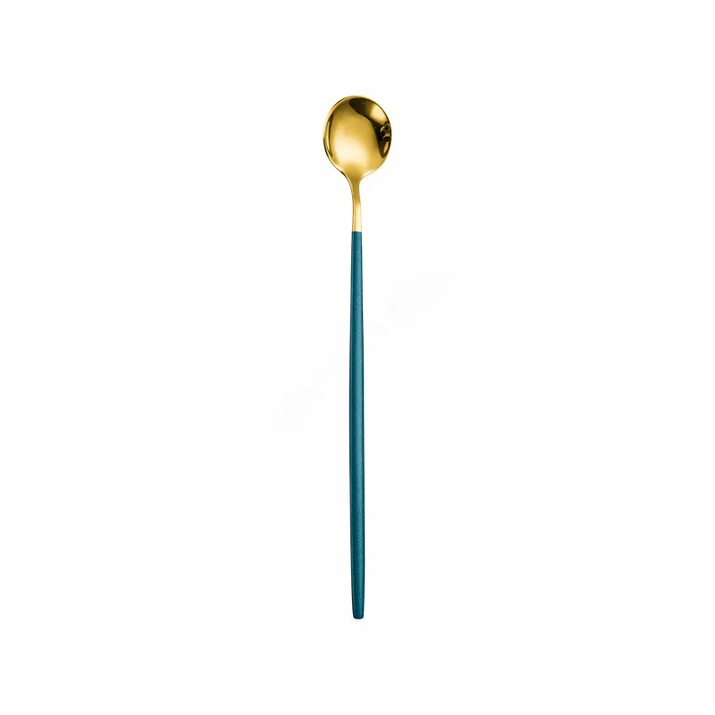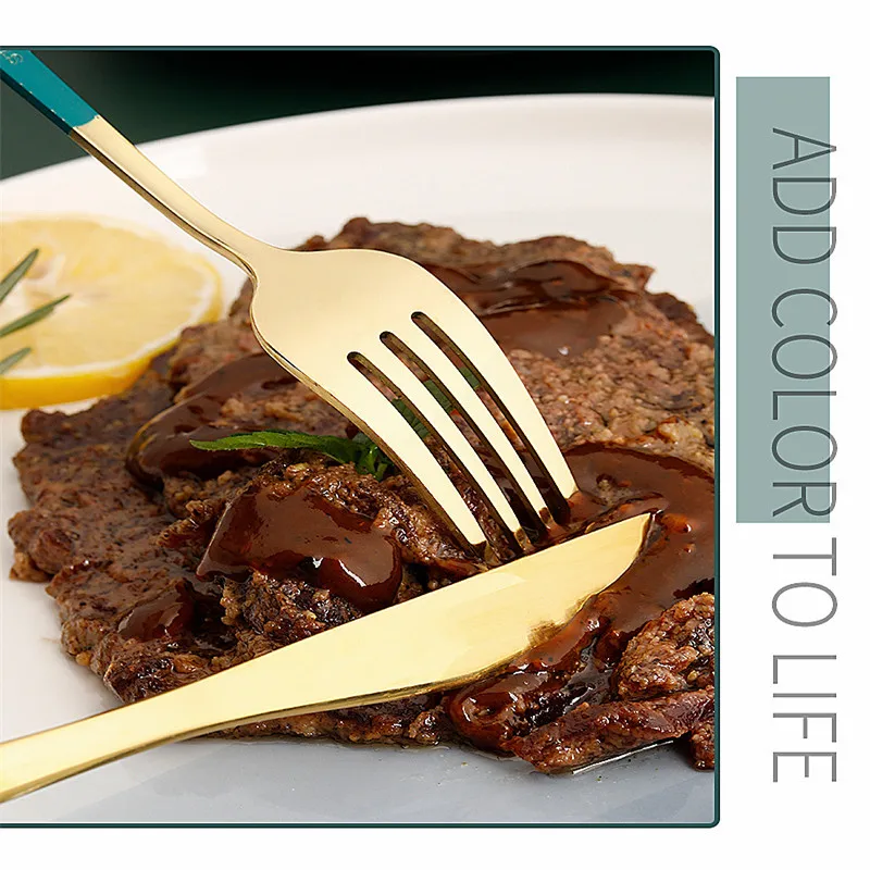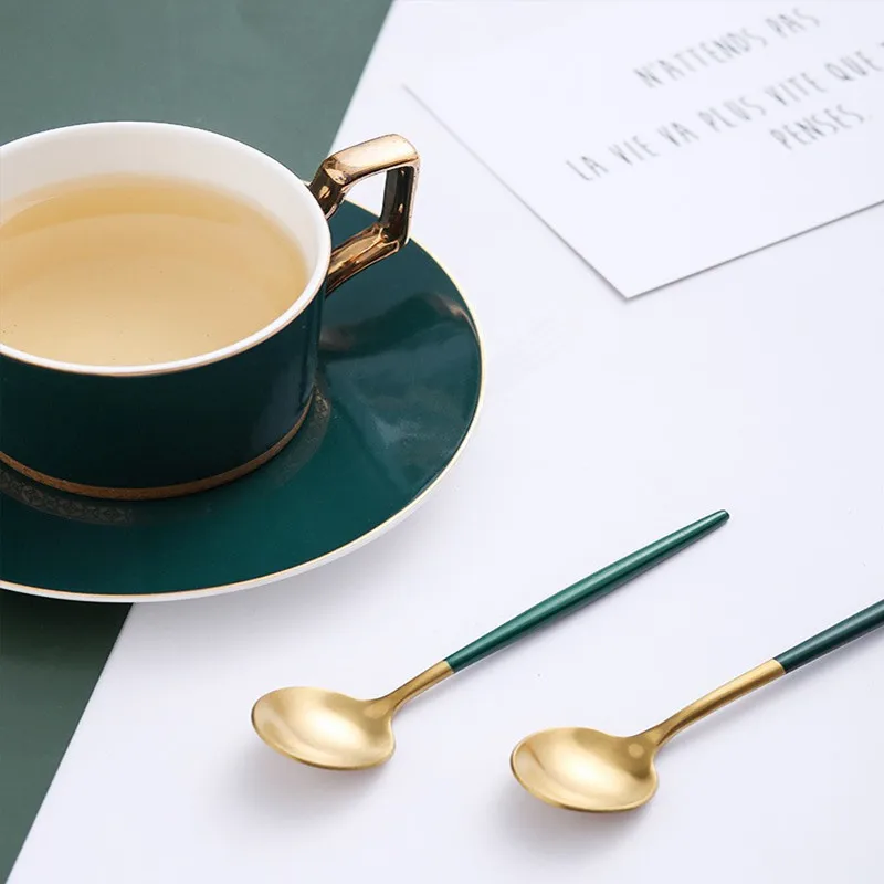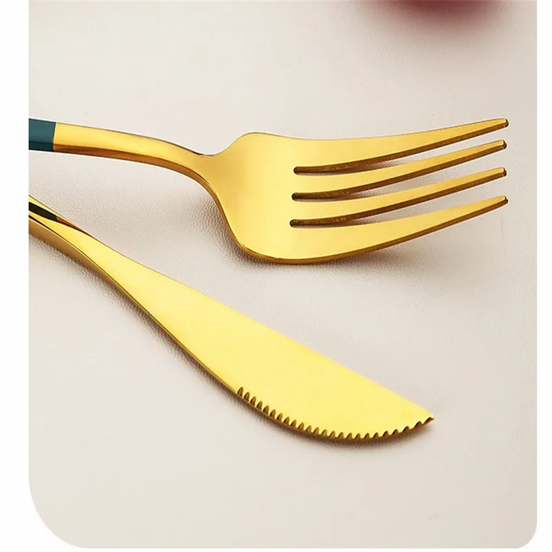 Зеленая Золотая столовая посуда, десертная ложка из нержавеющей стали, вилка для чая, столовая ложка, набор из двух предметов, экологически чистый