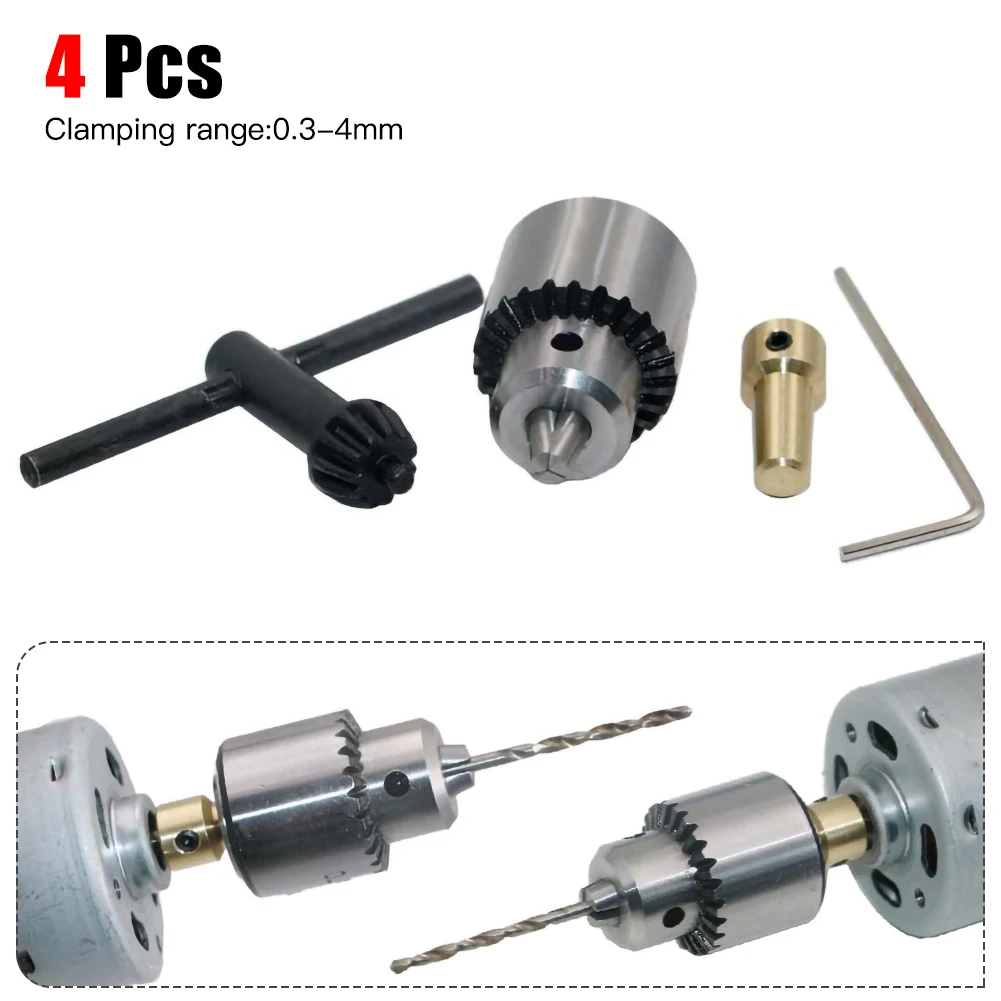 Патрон для дрели с микродвигателем, Диапазон зажима 0,3-4 мм, конический мини-сверлильный патрон с ключом патрона 3,17 мм, латунный вал электродвигателя
