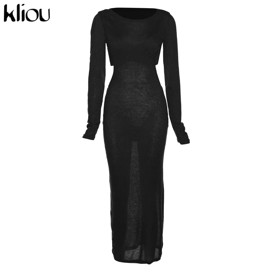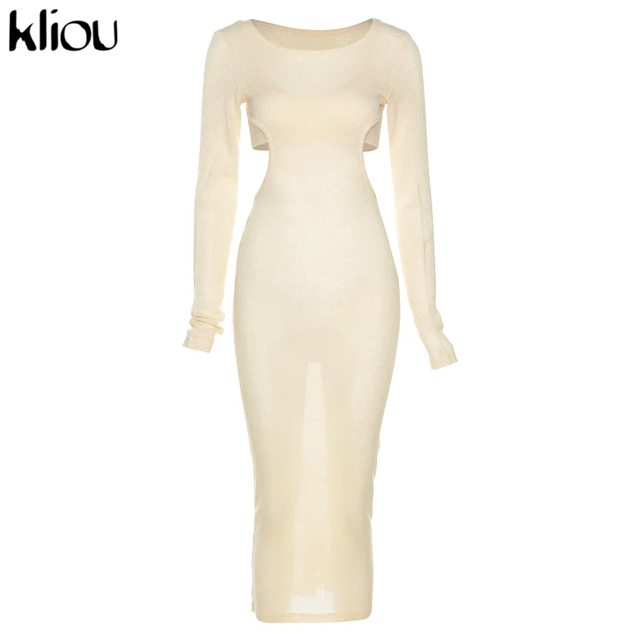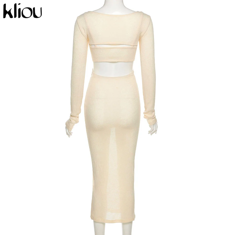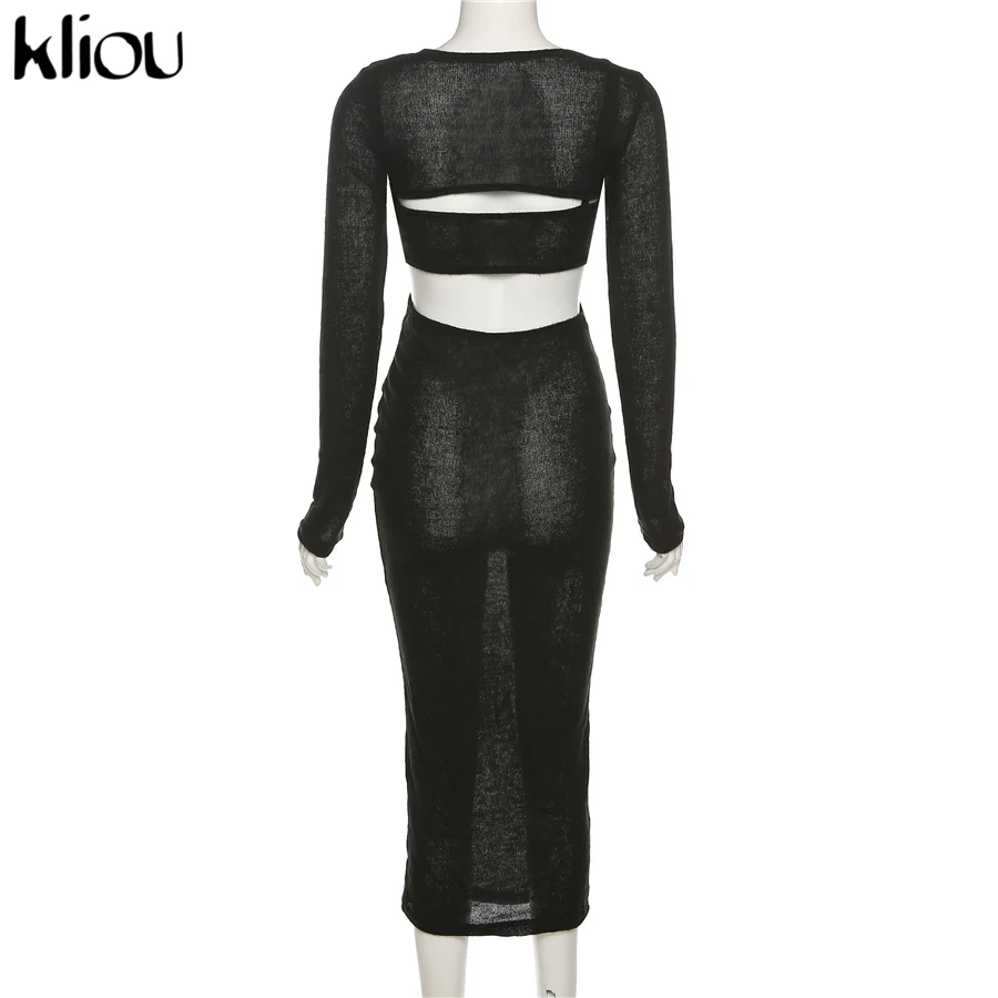 Женский трикотажный комплект из двух предметов Kliou, элегантный топ без рукавов с подкладкой + платье с длинным рукавом и открытой спиной