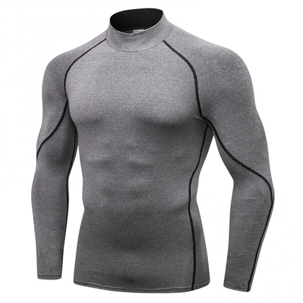 Мужская спортивная футболка для бега с длинным рукавом и воротником-черепашкой, Спортивная футболка для спортзала, термобелье, Верхняя спортивная одежда для спортзала, мужская одежда