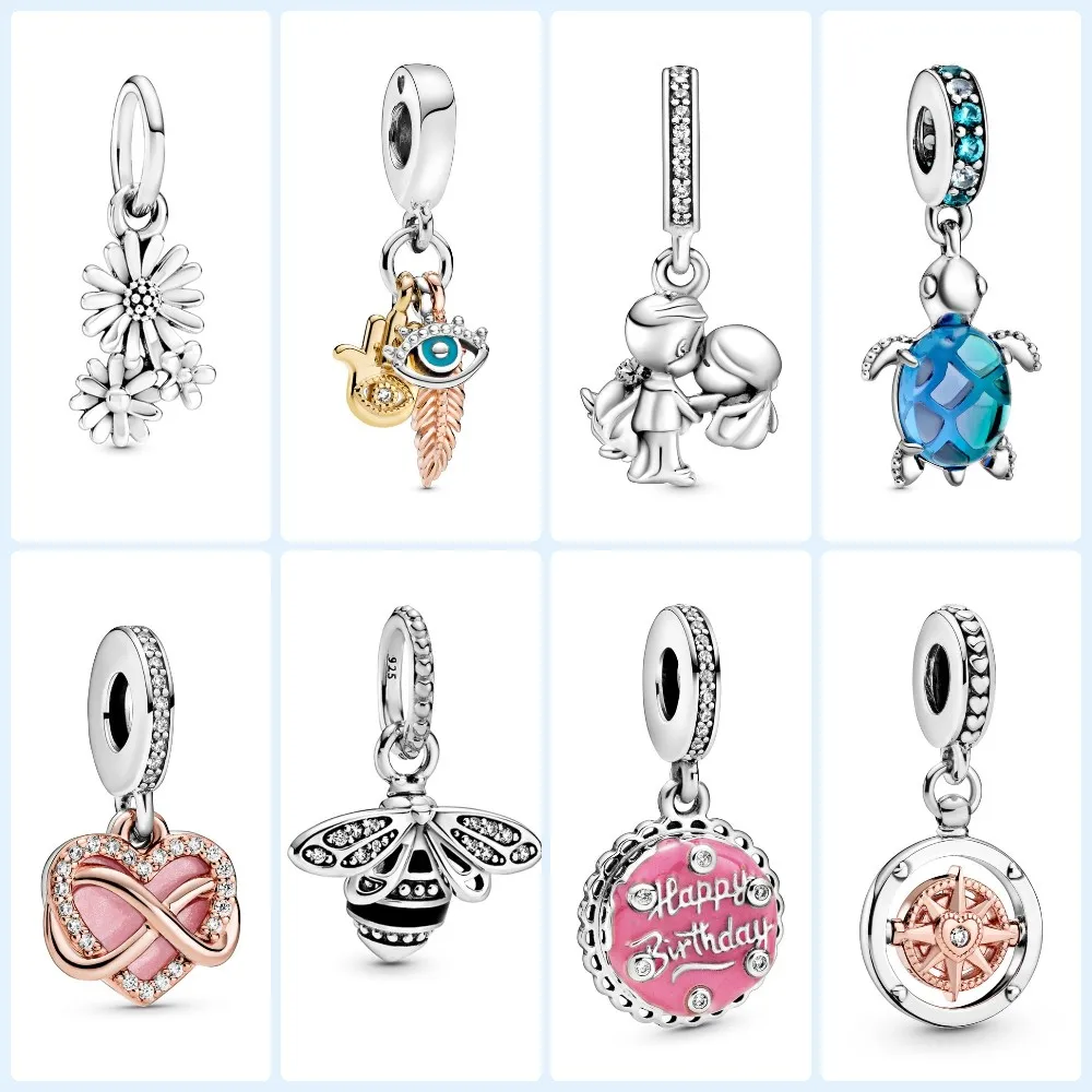 Новый Серебряный Изысканный кулон с бусинами подходит для браслета ...
