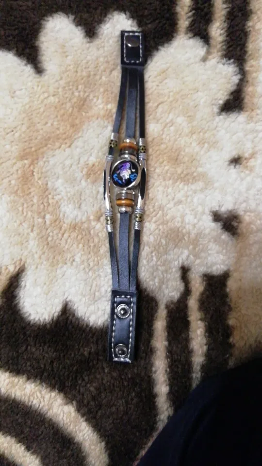 дочке понравилось,браслет красивый,с блестящим изображением рака на. большого типа бусины,застёжки на кнопочку,их две..пахнет кожей