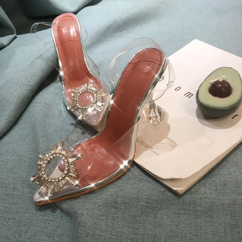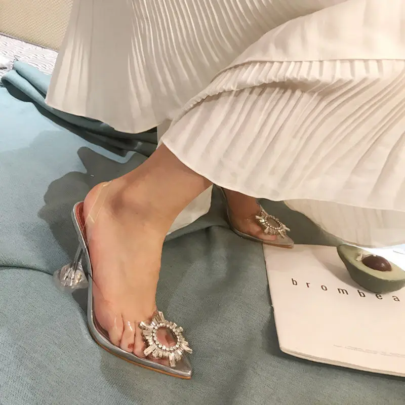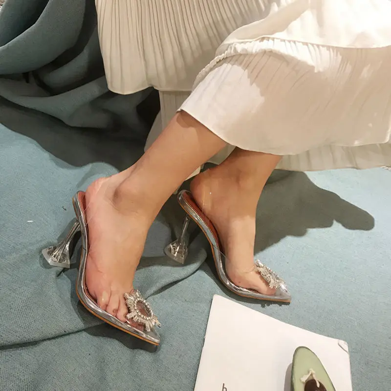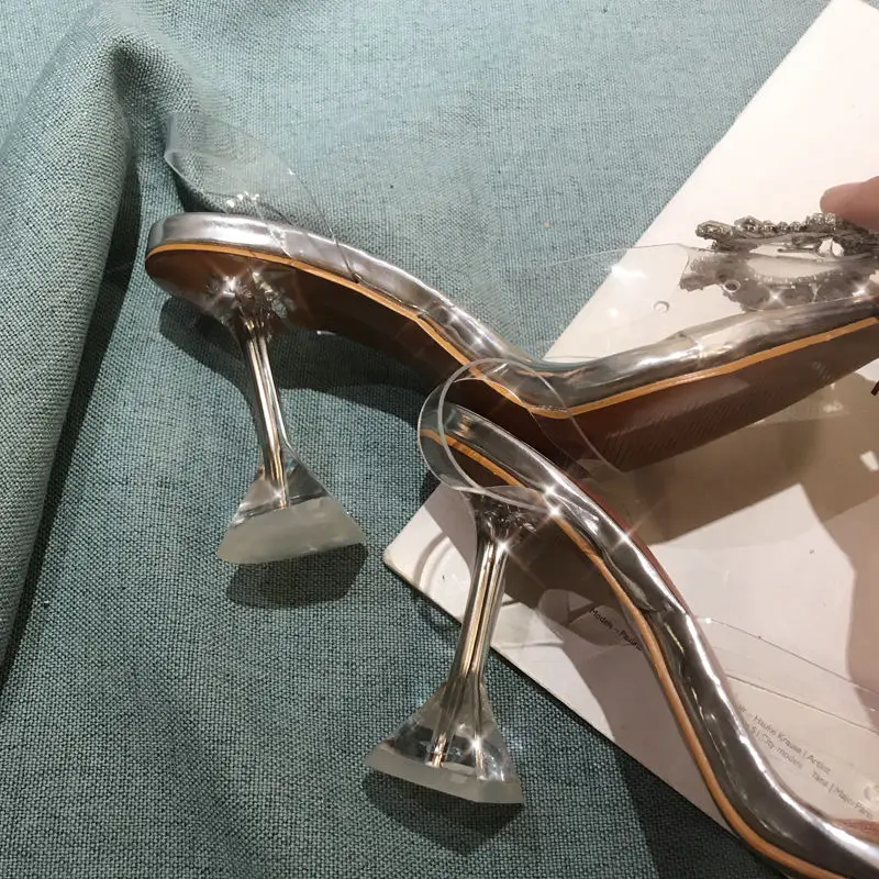 Летние женские сандалии; Прозрачные шлепанцы; Туфли-лодочки на высоком каблуке; Пикантные блестящие прозрачные женские шлепанцы; Прозрачные сандалии на каблуке; 42