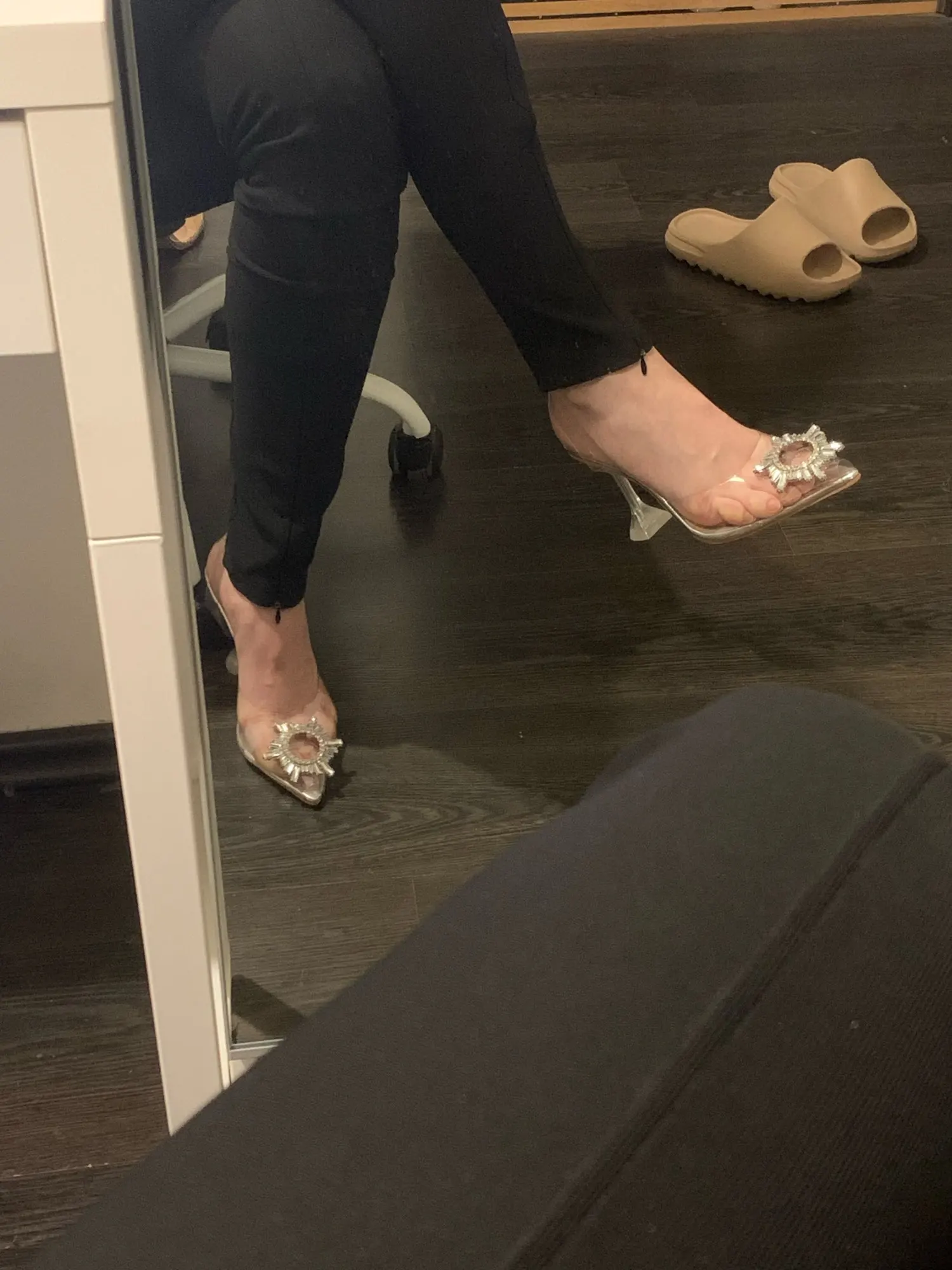 Шлепанцы женские прозрачные, на высоком каблуке, с блестками, для лета, 42