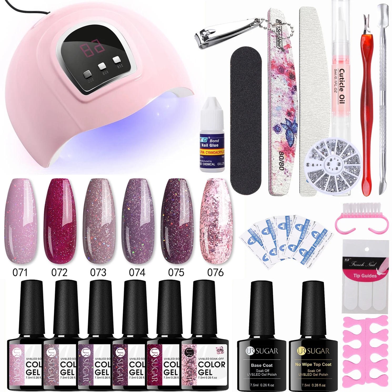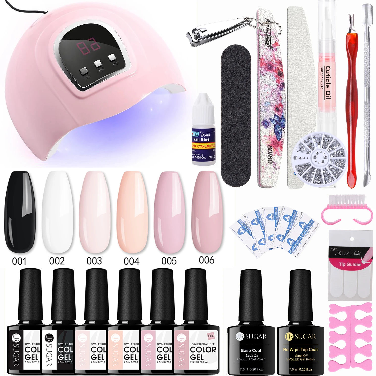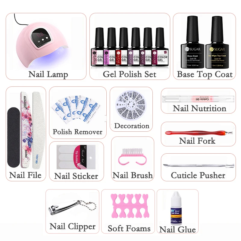 Набор для маникюра UR SUGAR с УФ-светодиодной лампой и стеклянной бутылкой из 6 предметов, средство для перманентного маникюра, базовое и верхнее покрытие