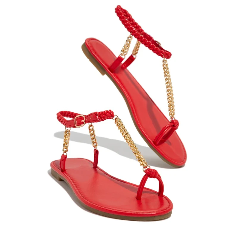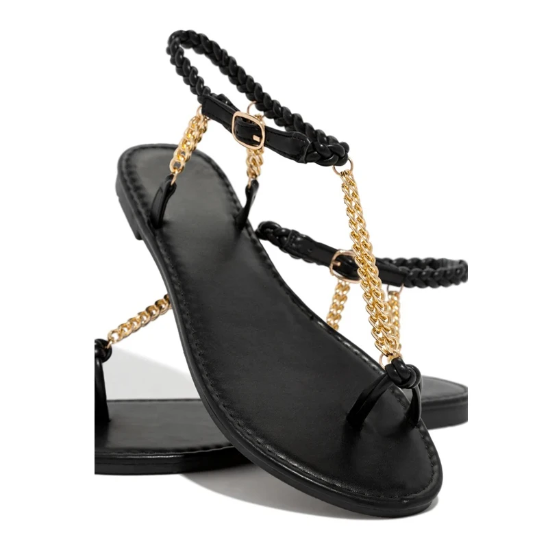 Сандалии женские плетеные с цепочкой, повседневные босоножки с плет...