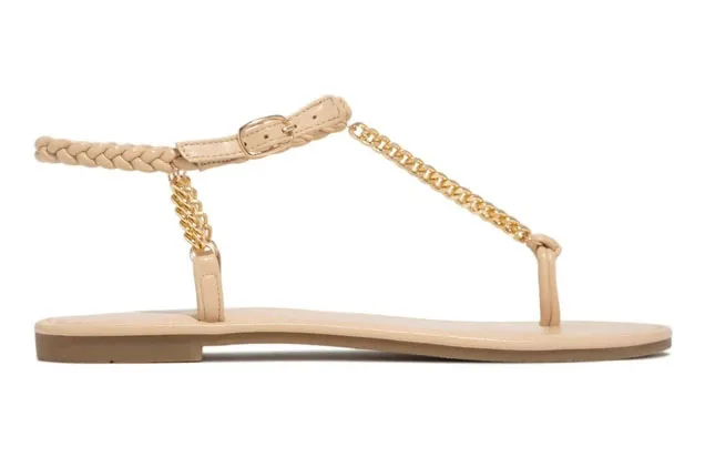 Шлепанцы женские с металлической цепочкой, сланцы, пляжные сандалии...