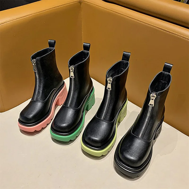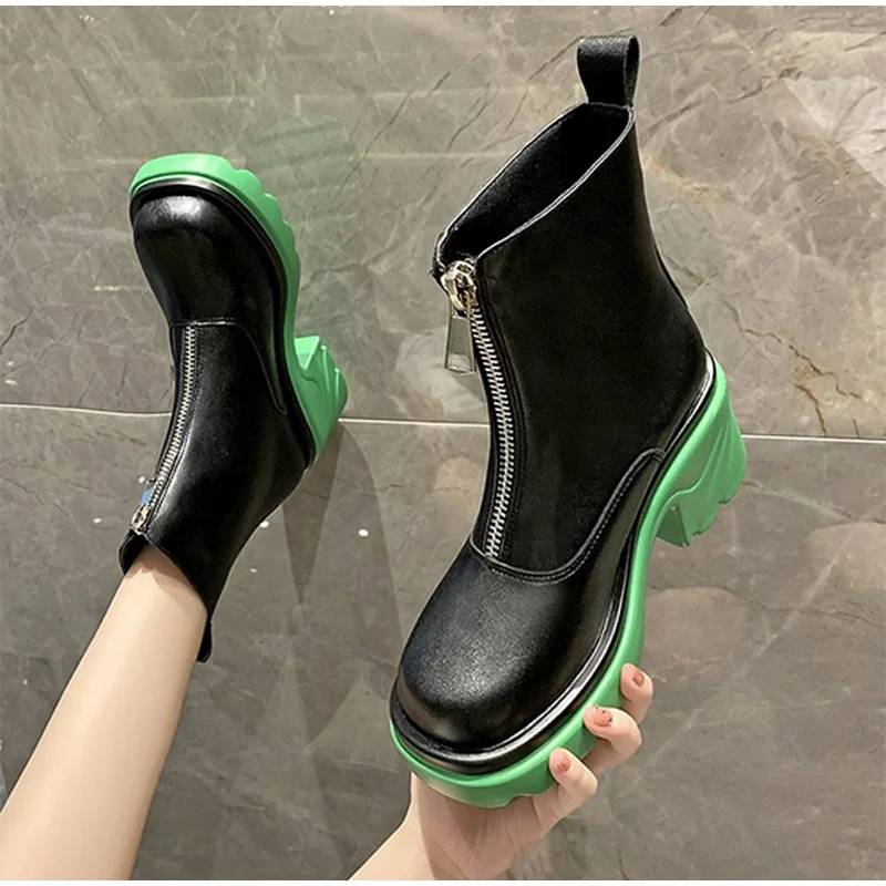 Женские ботинки; Ботильоны со шнуровкой на толстой подошве; Сезон осень; Круглый носок