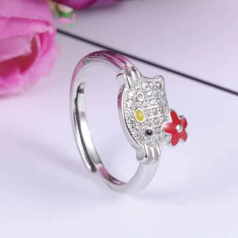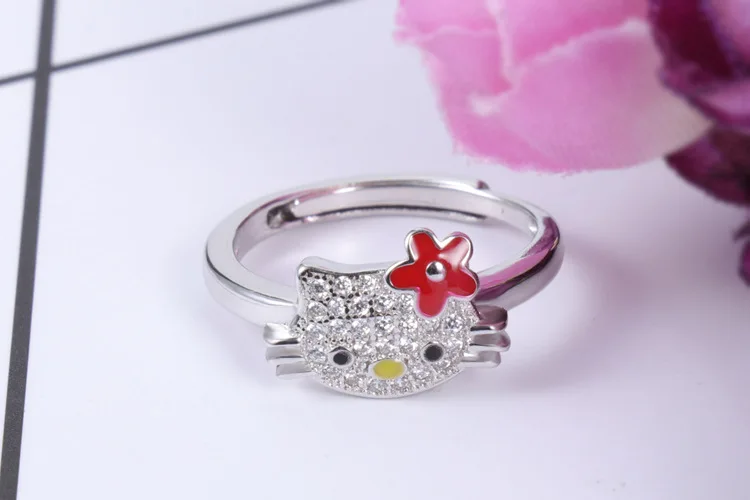 Модное изысканное кольцо с платиновым покрытием Hello Kitty ювелирное изделие открытое регулируемое обручальное свадебное Подарочное кольцо праздничный подарок