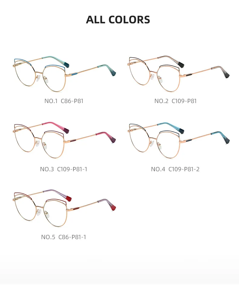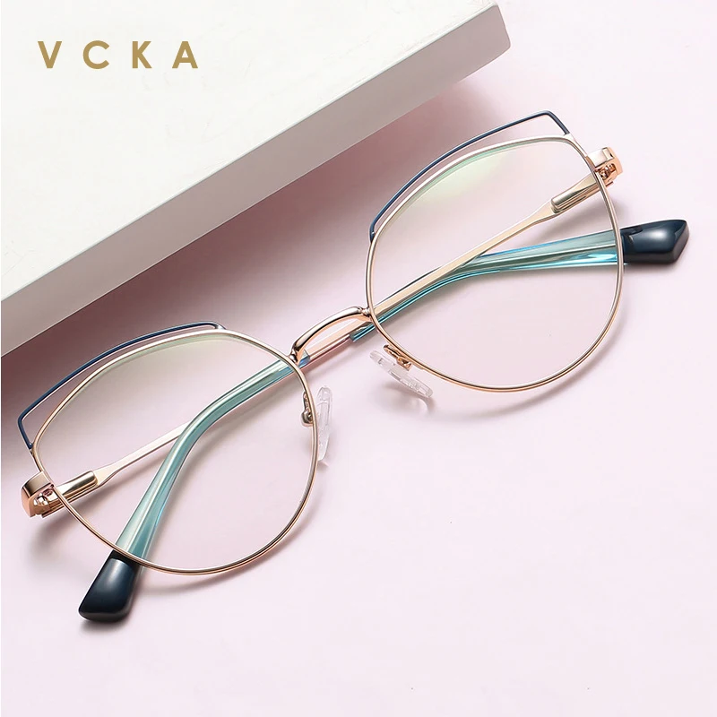 Очки для чтения женские VCKA, металлические, с защитой от синего излучения, с двумя цветными плоскими зеркальными линзами, в оправе от + 50 до + 600