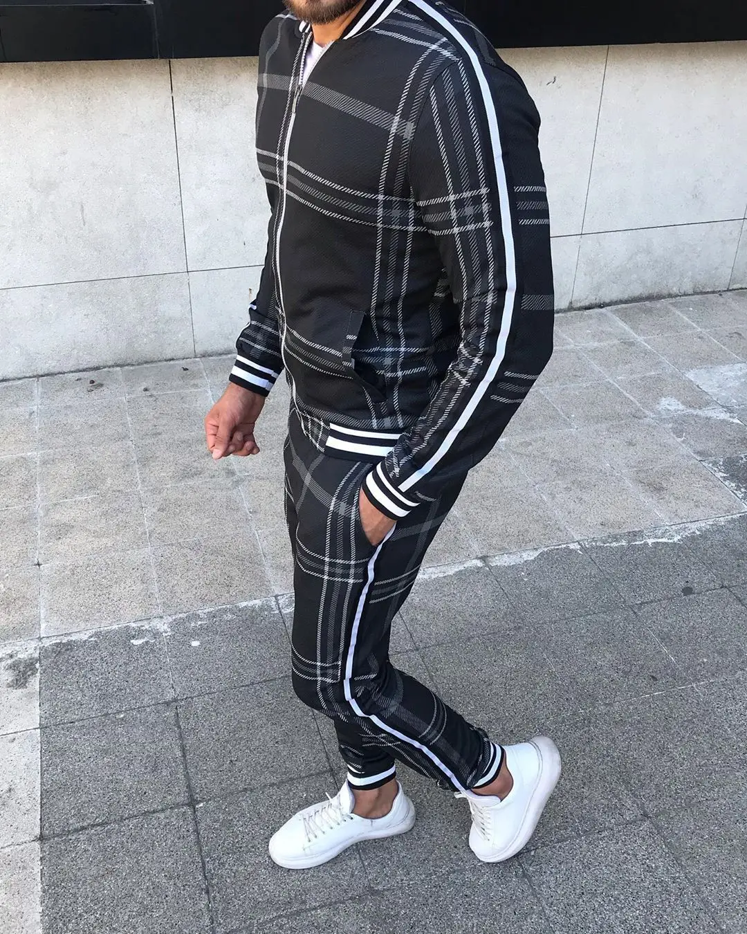 Мужской Клетчатый спортивный костюм с объемным рисунком, мужской ко...