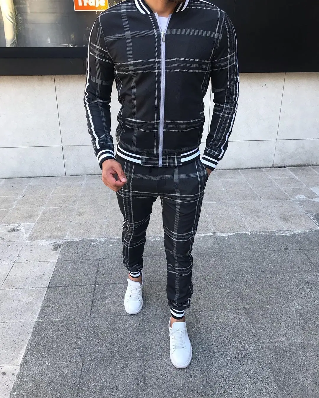 Новинка 2020, мужской спортивный костюм для мужчин, брендовый клетч...