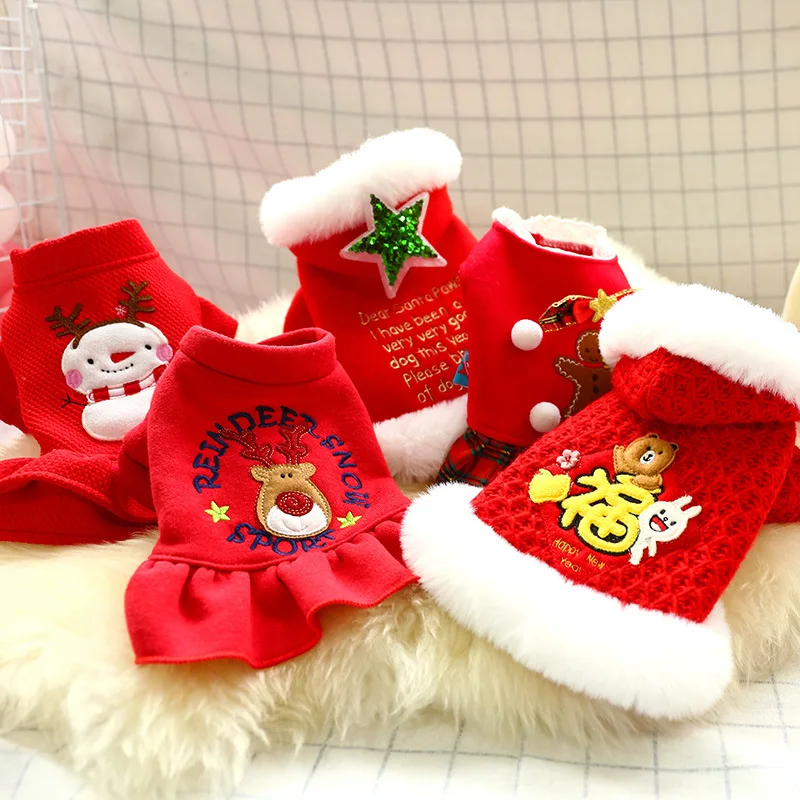 Рождественское платье с капюшоном для собак, прочная мягкая одежда ...