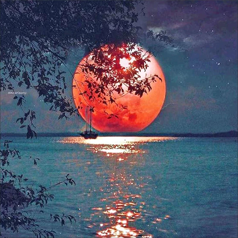 DIY Алмазная картина полная круглая дрель Луна Дерево картина, Алмазная мозаика Алмазная вышивка Пейзаж Вышивка крестом Комплект домашний декор
