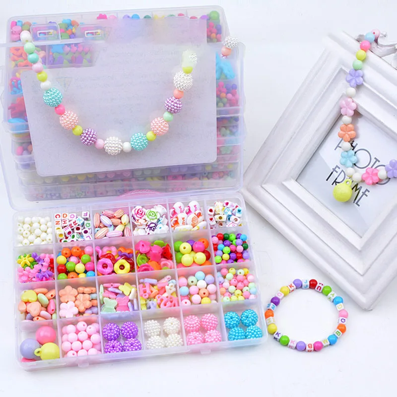 Набор для изготовления браслетов, бусин, игрушек для детей, 24 ячейки, пазлы ручной работы, бусины для девочек, набор игрушек для девочек 3 5 7 9 11