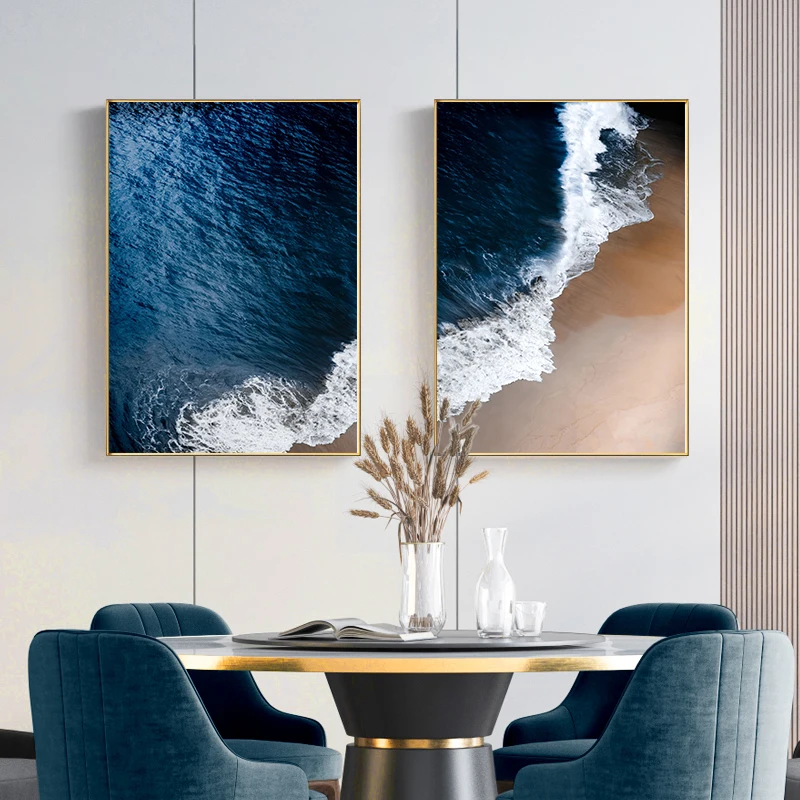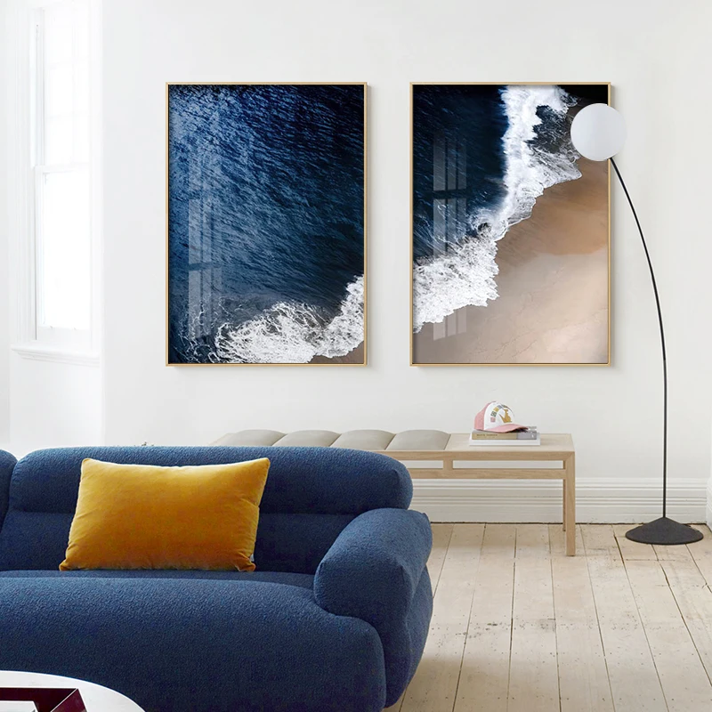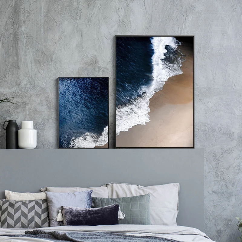 Постер на холсте с изображением синего океана, пейзажа, пляжа, современная картина с морским пейзажем, нордический домашний декор, настенные картины для гостиной