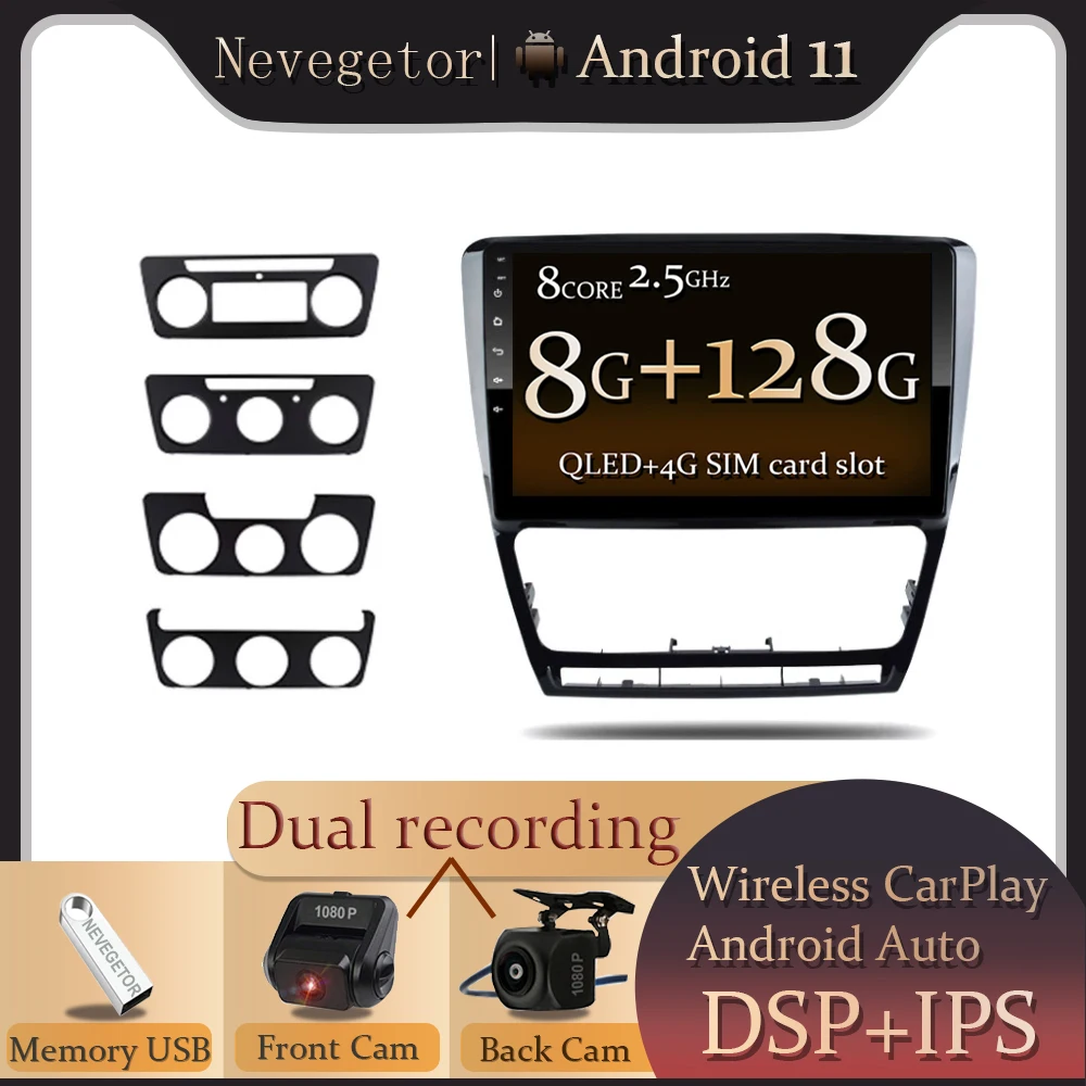 Автомагнитола на Android 11 для Skoda Octavia 2 2008-2013, мультимедийный видеоплеер с GPS-навигацией, без DVD, 2 Din, Восьмиядерный