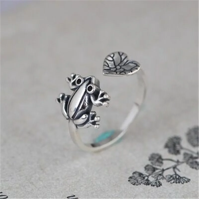 Открытое кольцо в виде лягушки с листьями лотоса, яркая фигурка животного, металлическая бижутерия на палец, регулируемый Ретро стиль, подарок для женщин и мужчин, BH