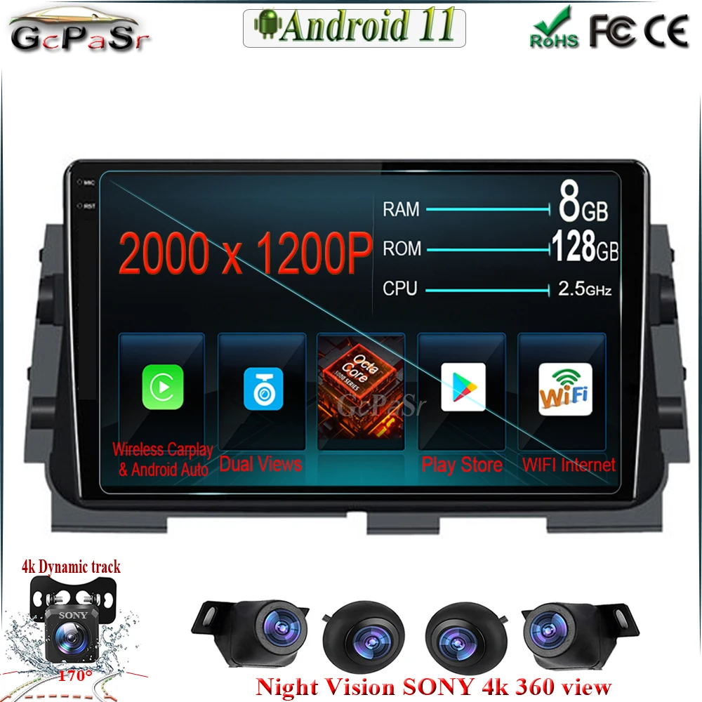Автомобильная стерео-система на Android 11 с двумя объективами для ...