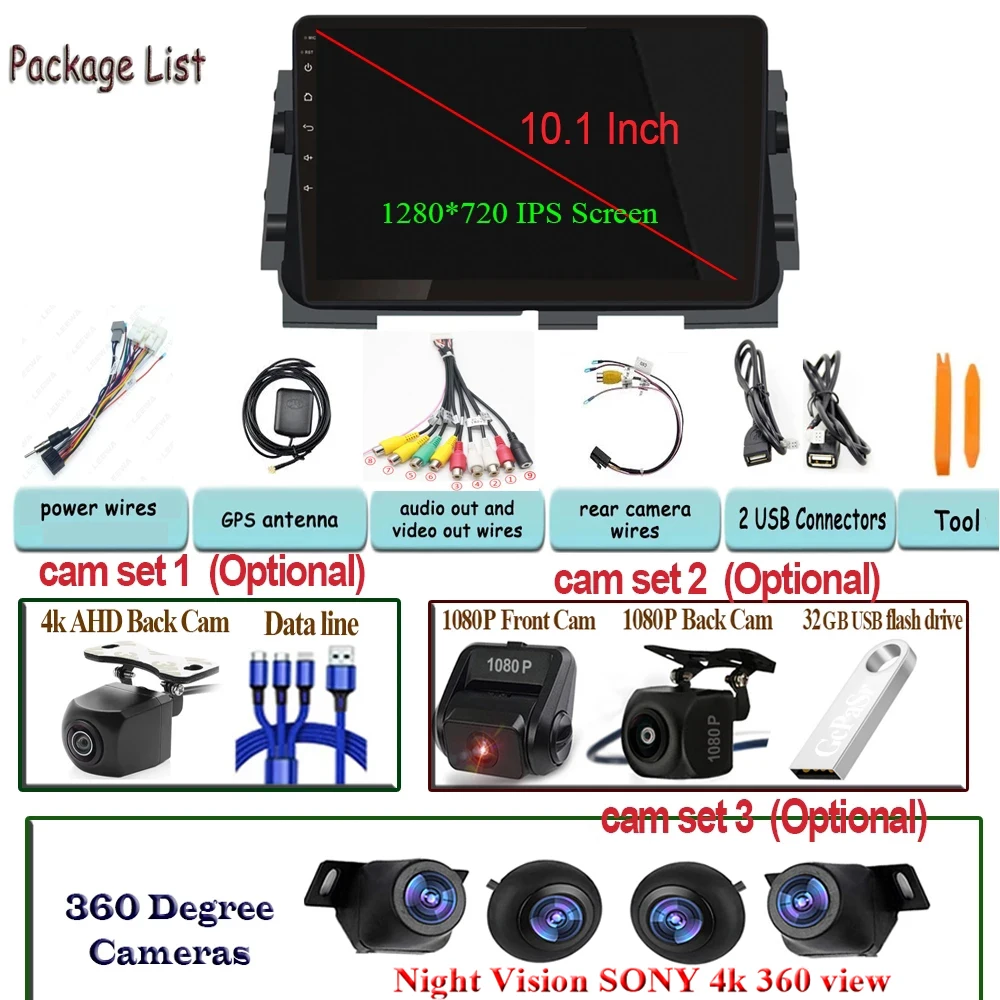 Автомобильный стерео Мультимедийный проигрыватель 360, камера для H...