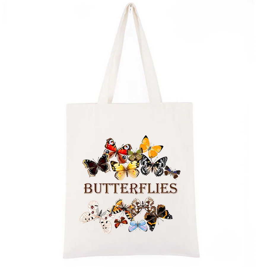 Женские сумки для покупок с принтом бабочек и цветов, Женская Холщо...