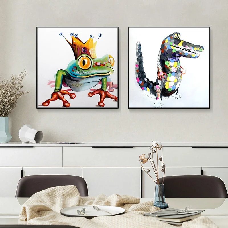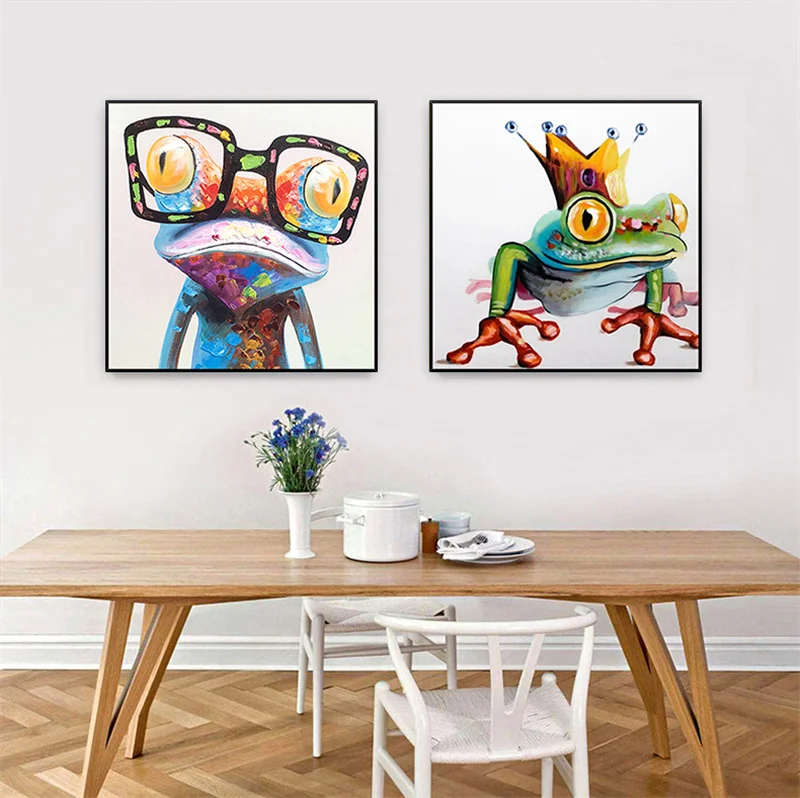 Скандинавские акварельные животные, лягушка, пингвин, собака, милые домашние животные, холщовые Плакаты для детской спальни, Мультяшные декоративные картины, Настенный декор для детской комнаты