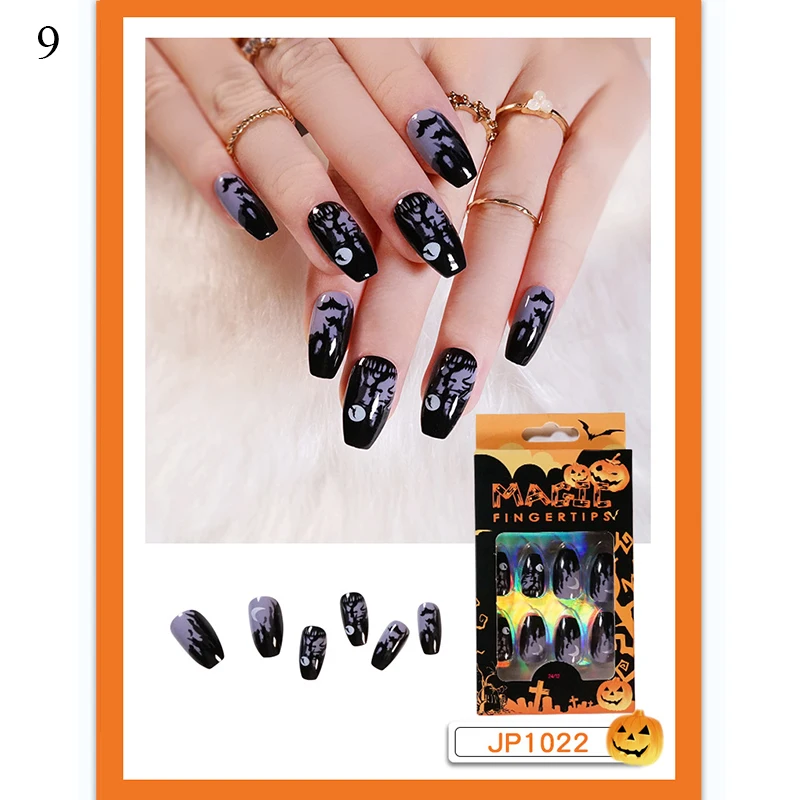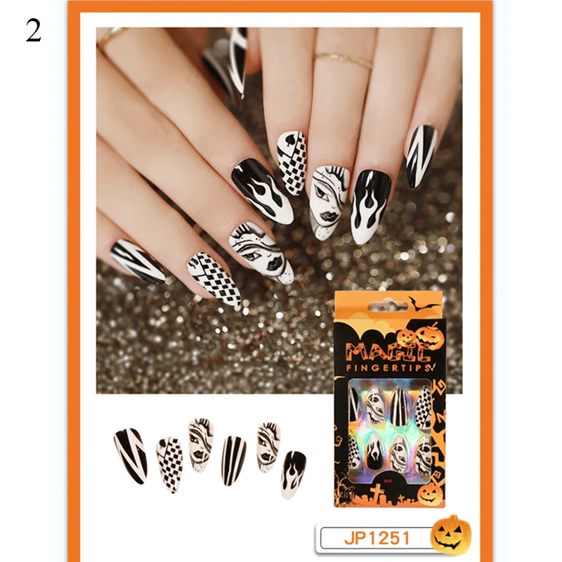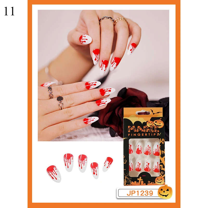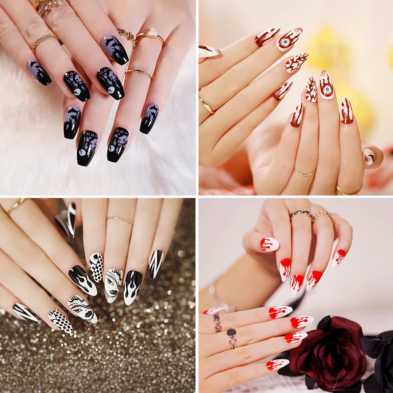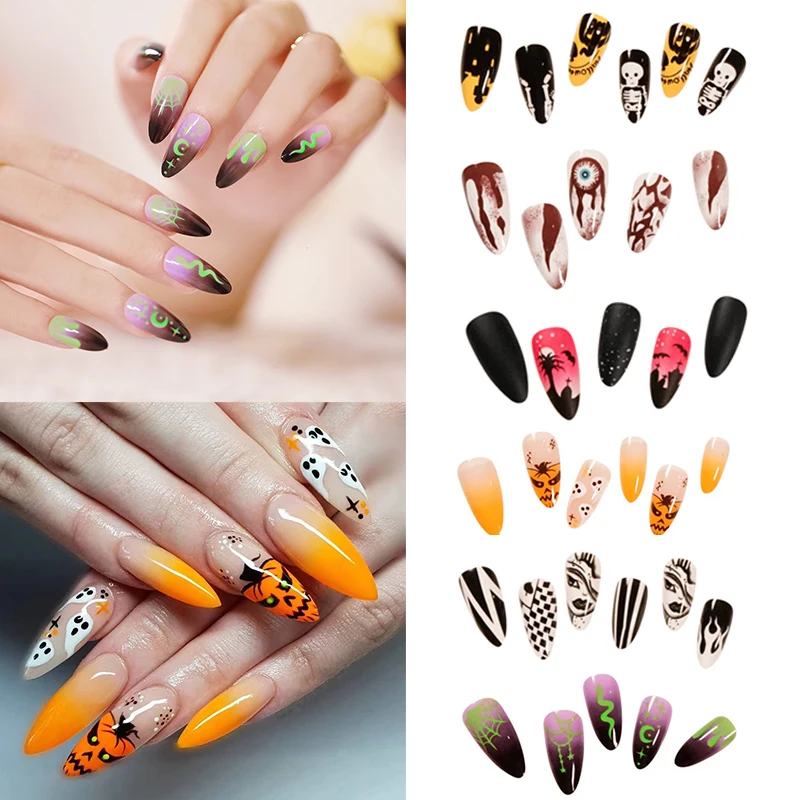 Искусственные акриловые ногти, средней длины, 24 шт., накладные ногти, наращивание ногтей, Хэллоуин, накладные ногти с полным покрытием