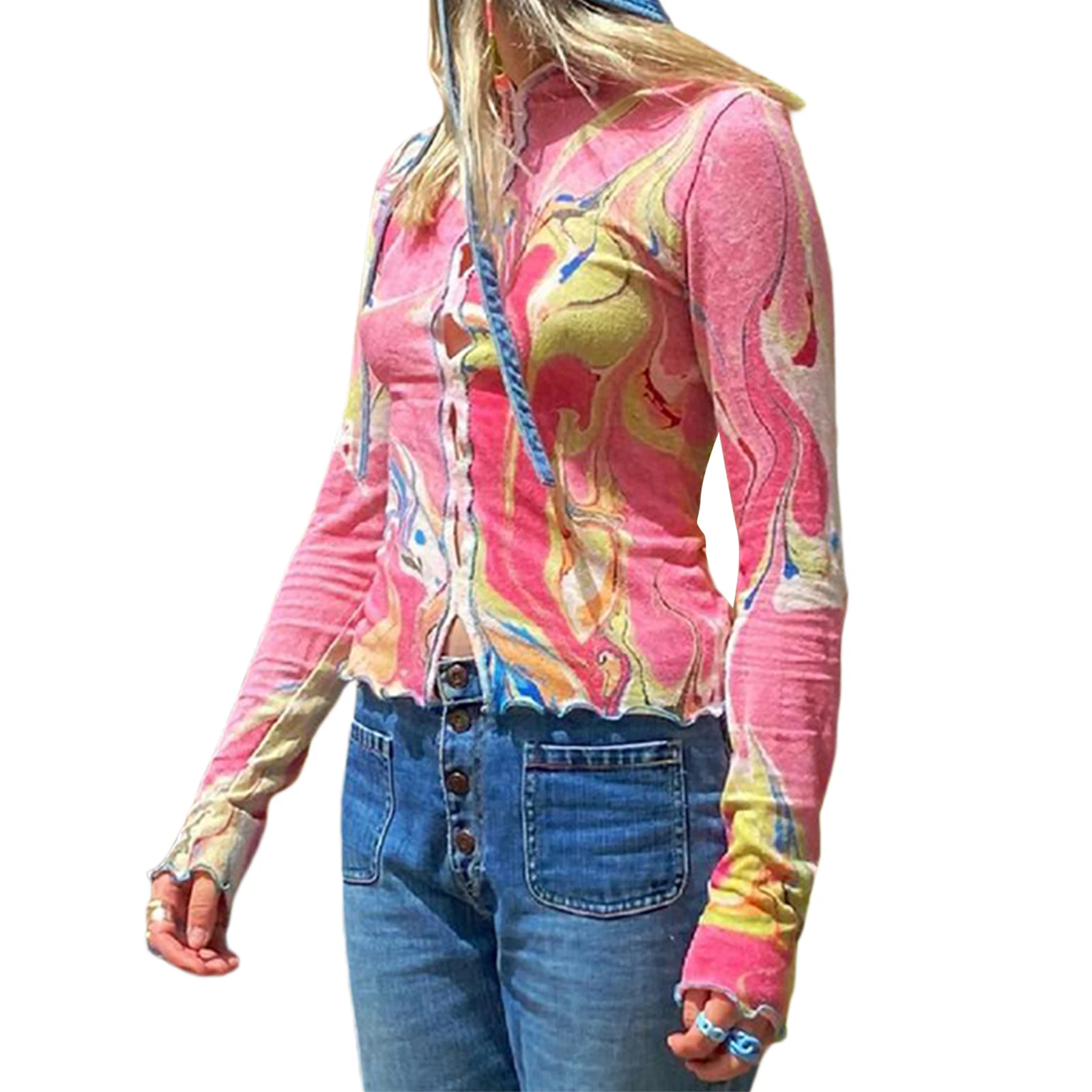 Женский Осенний укороченный топ, асимметричный принт с длинными рукавами Filly тонкая кофточка