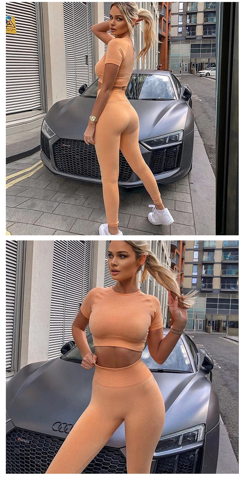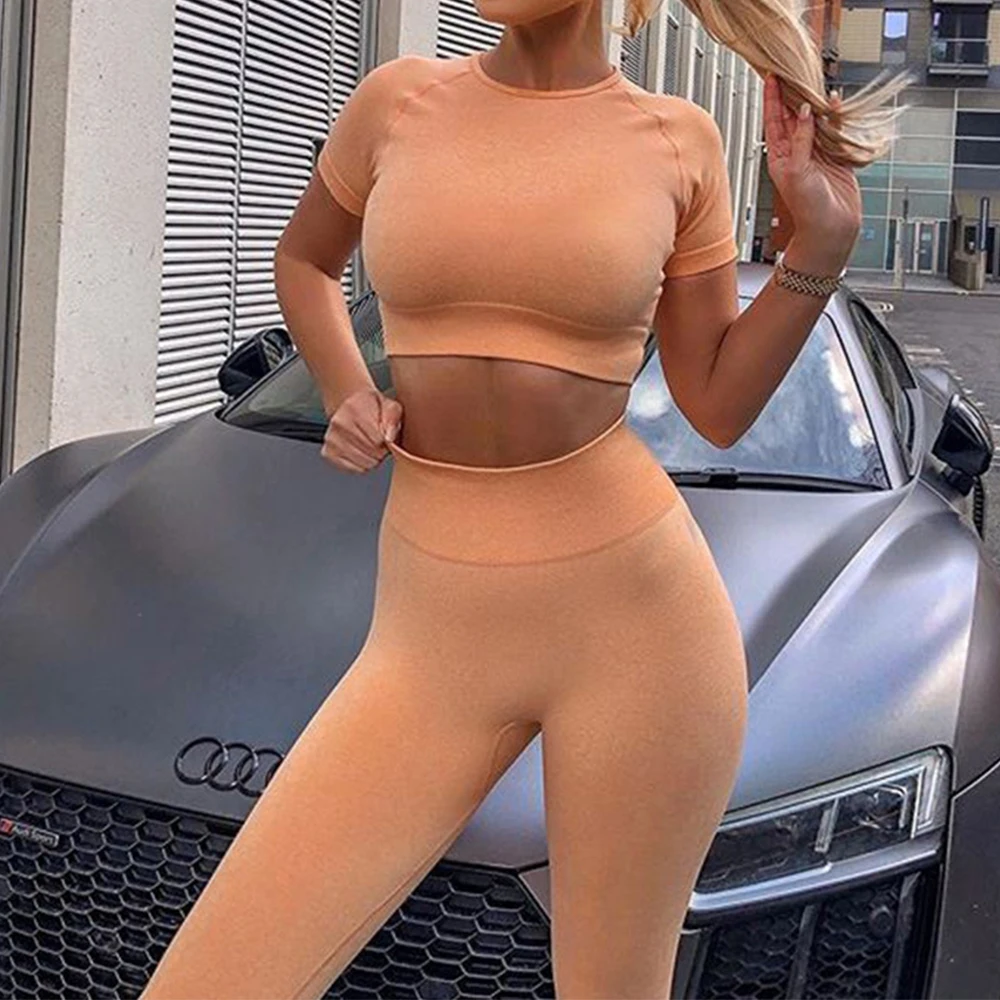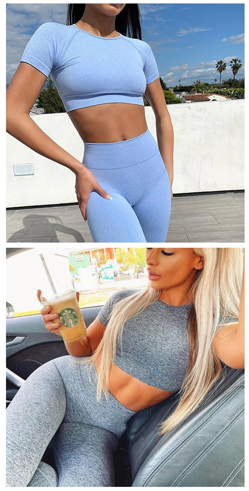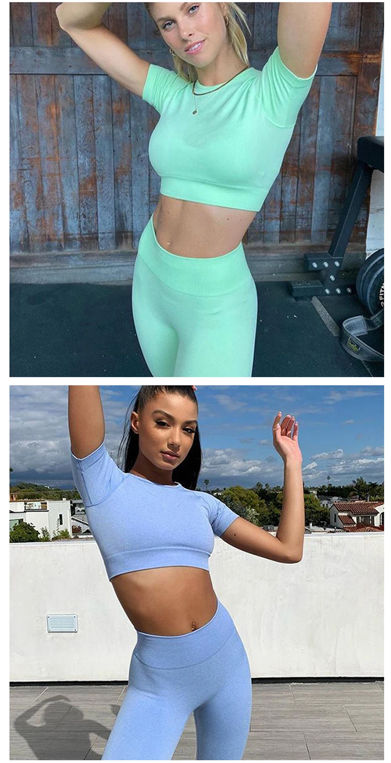 Комплект из двух предметов, бесшовный Женский комплект для йоги, спортивные костюмы, женская спортивная одежда для тренировок, одежда для спортзала, бесшовные леггинсы с высокой талией, спортивный топ