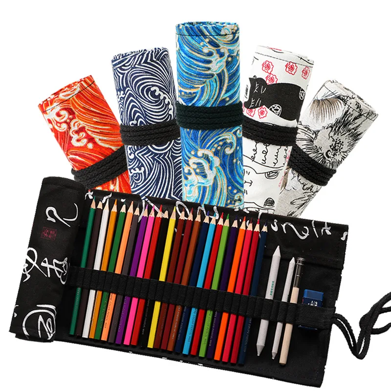 36 отверстий рулон Цветной Карандаш Чехол Kawaii школьный холщовый ...