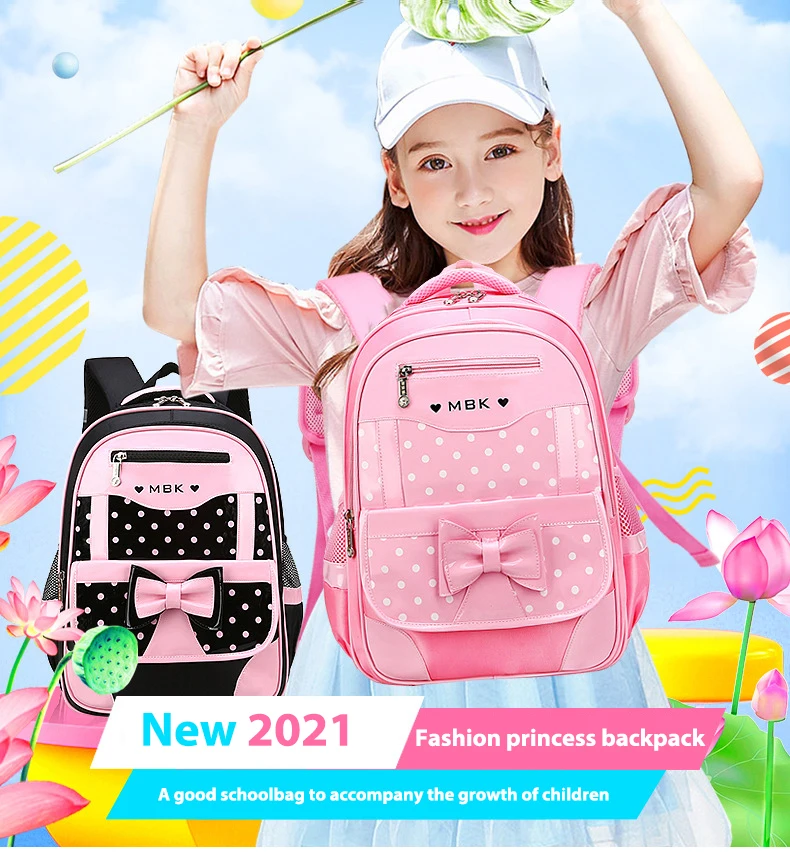 Детская школьная сумка для девочек, Модный милый школьный рюкзак в горошек с бантом для детей 6-12 лет, легкая книжная сумка для лучшего подарка
