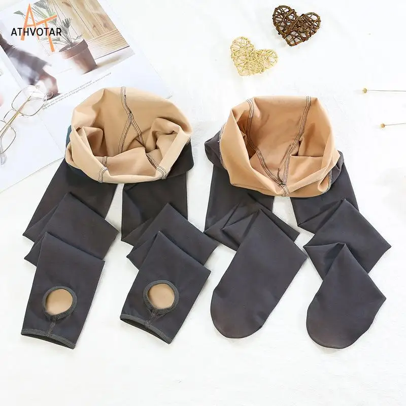 Женские зимние теплые леггинсы ATHVOTAR, Суперэластичные леггинсы с высокой талией, плотные бархатные облегающие Термолеггинсы для девушек