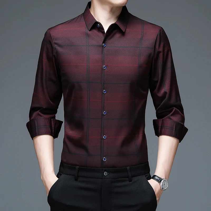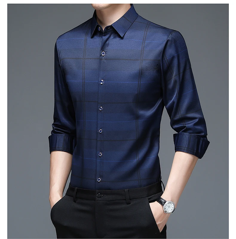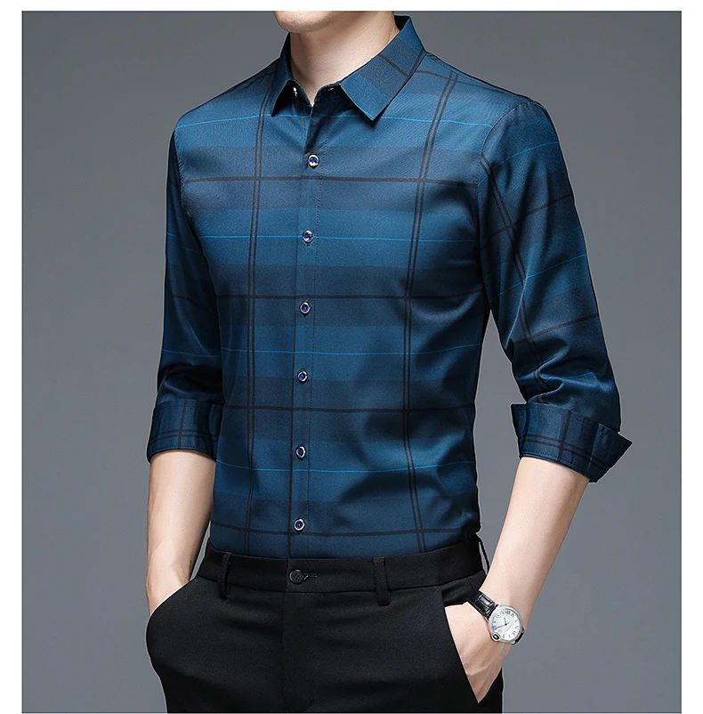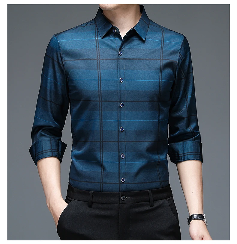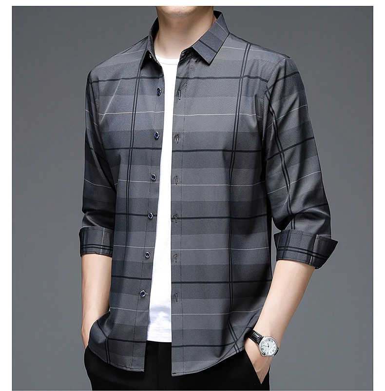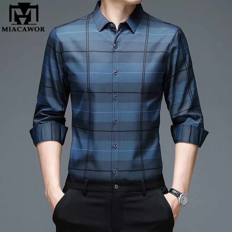 MIACAWOR, Новая высококачественная Мужская рубашка, приталенный пул...