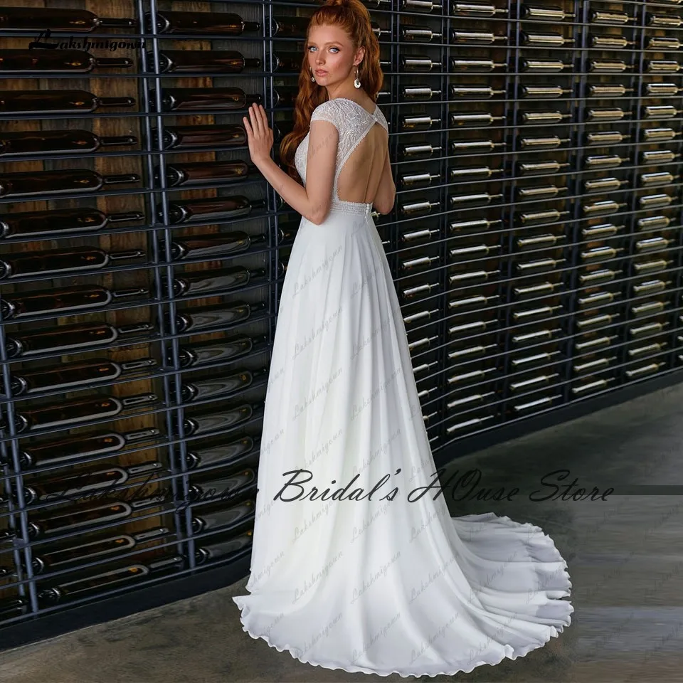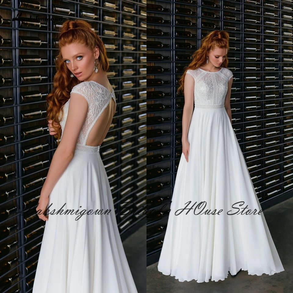 Женское свадебное платье в стиле бохо, белое шифоновое платье с кружевным лифом и рукавами-крылышками, лето 2021