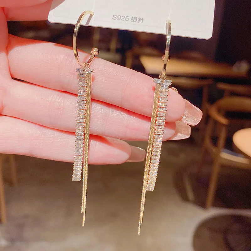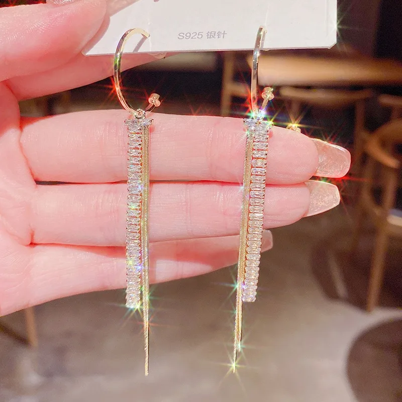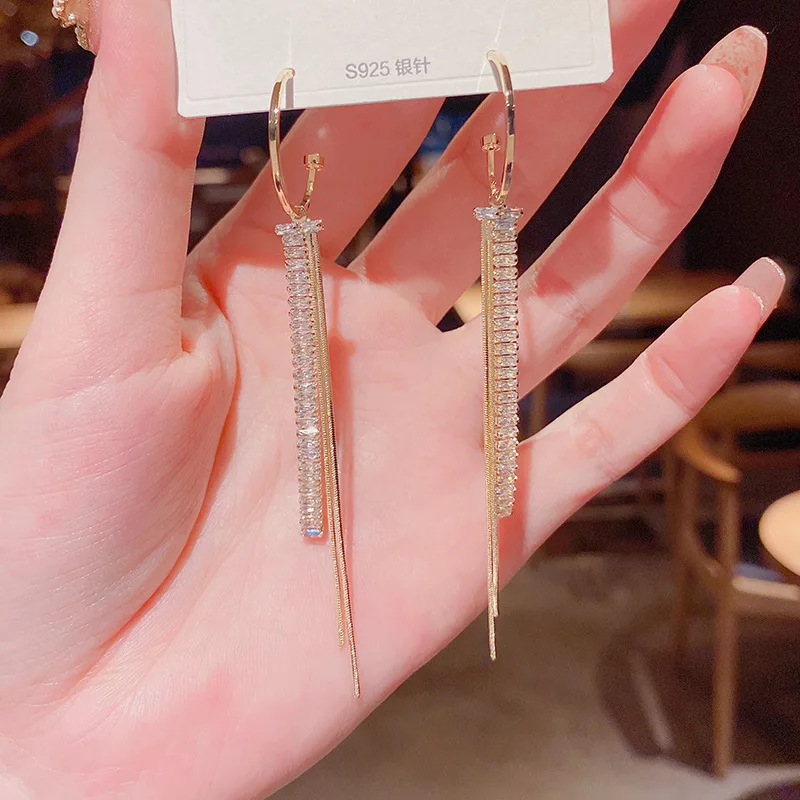 Женские длинные серьги-гвоздики, золотистые серьги с цирконом, массивное Ювелирное Украшение для вечерние ринки или свадьбы, 2021