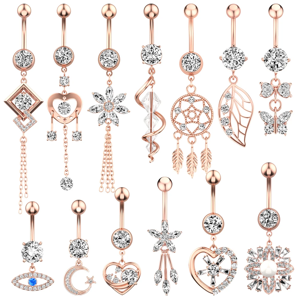 Кольцо для пупка с кристаллами, 1 шт., 14G, сердце, живот, висячий ...