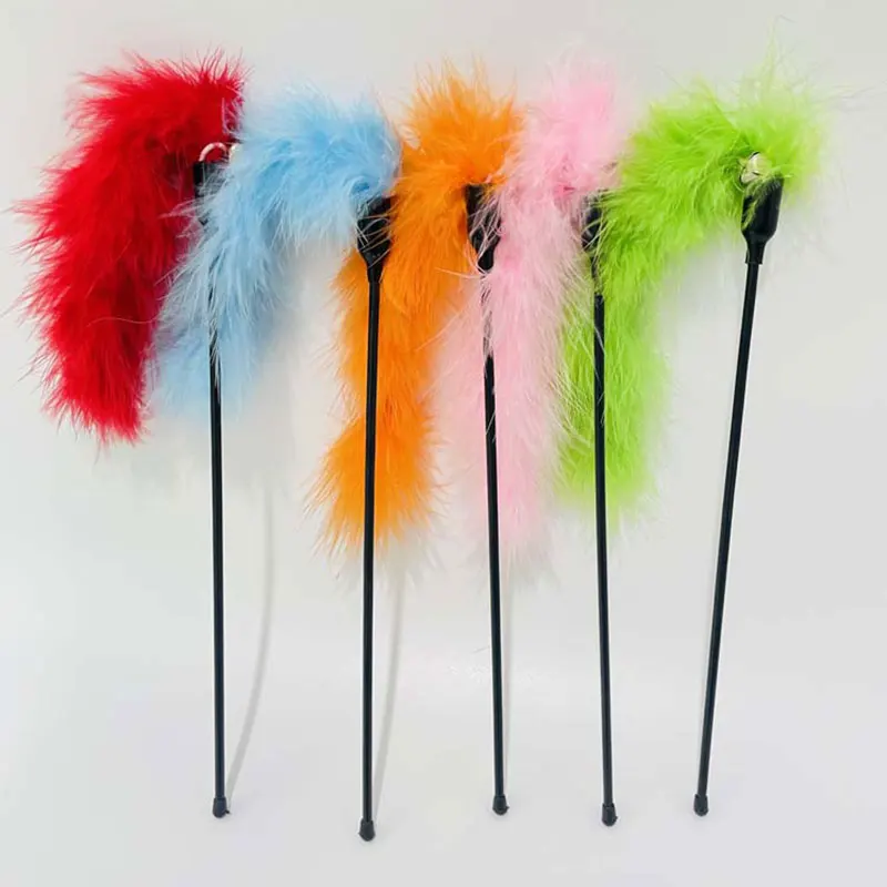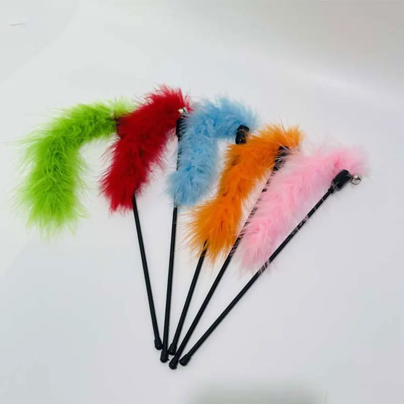 Красочные игрушки для кошек и перьев, интерактивные кошачья палочка, игрушки для кошек с колокольчиком Jingle, длинная палочка из перьев 16 дюймов для домашних кошек и котят