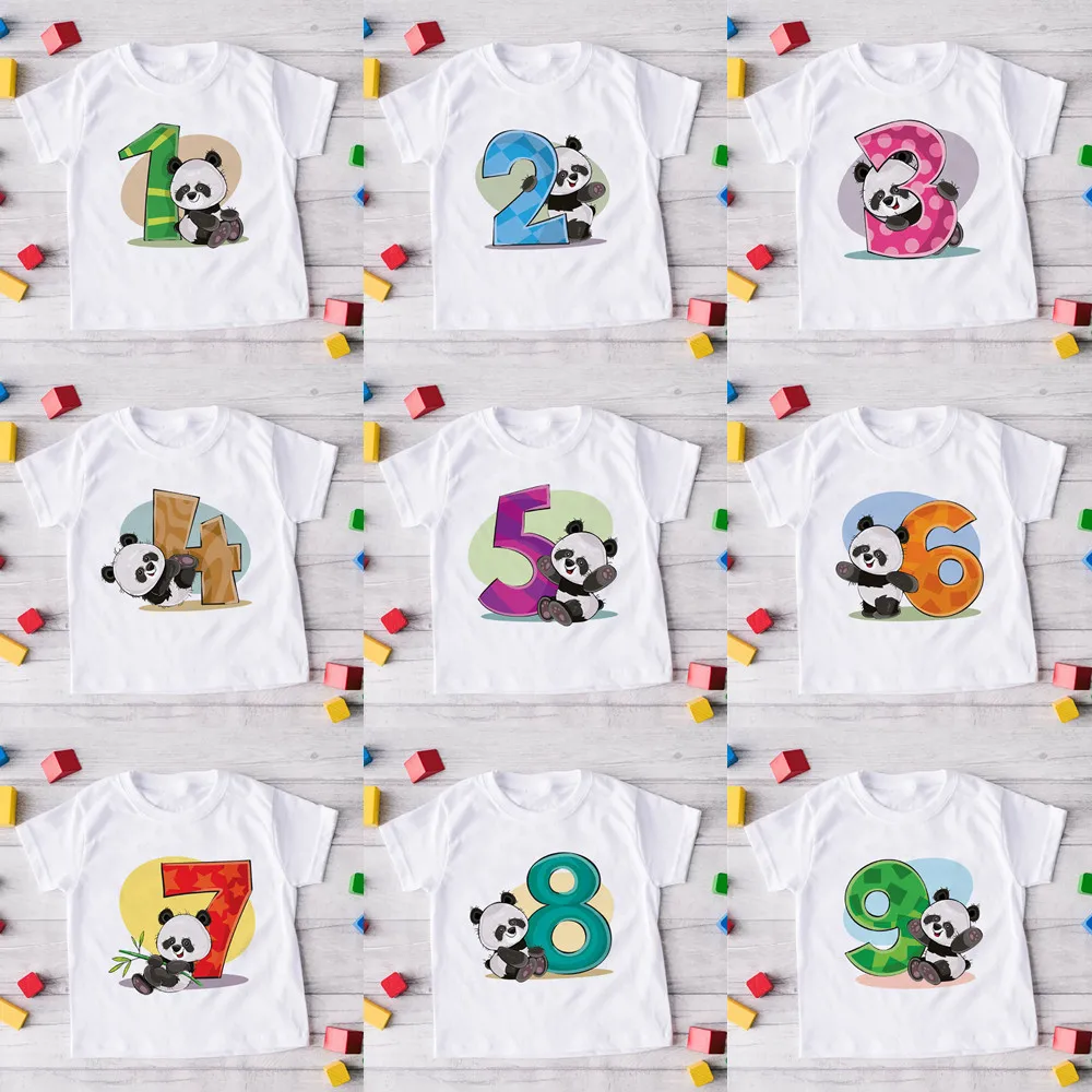 Детская футболка с рисунком панды на день рождения с номером 1-9; Футболка для мальчиков и девочек; Подарок на день рождения; Одежда для малышей; От 1 до 9 лет