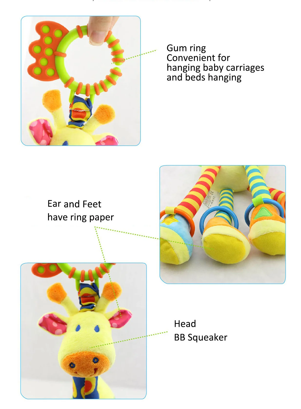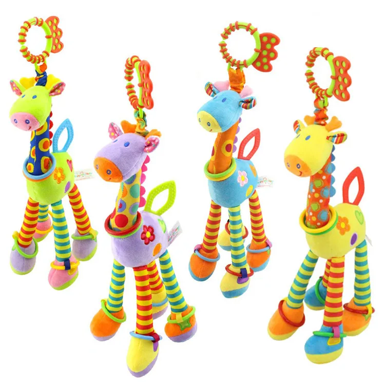 Детская подвесная плюшевая игрушка, коляска погремушка, мобильная кровать, кукла в виде милых животных, жираф, подвесной Колокольчик для детской кроватки, 0-12 месяцев