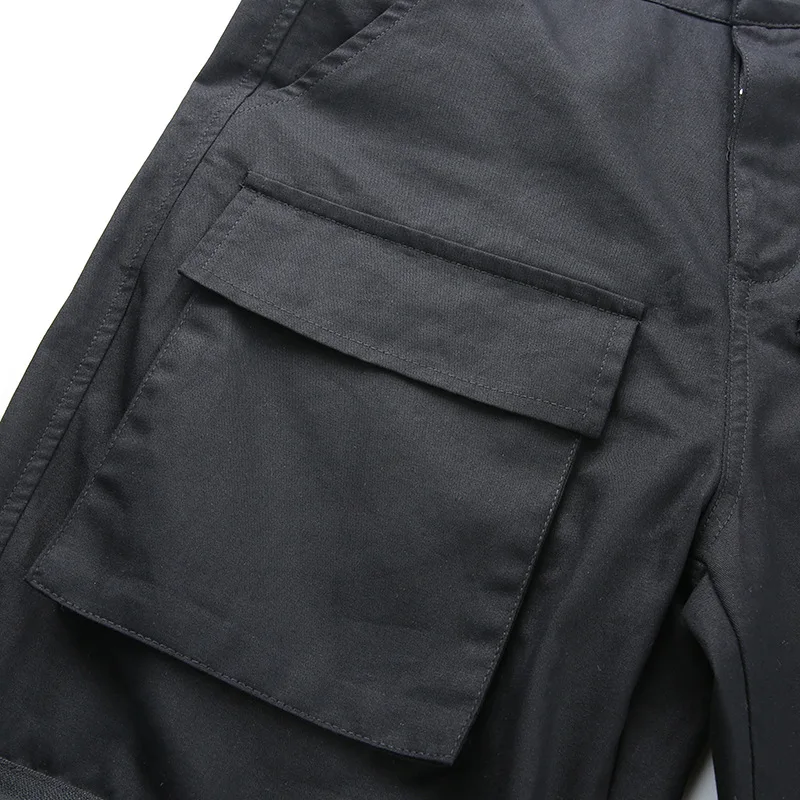 Брюки-карго женские черные на молнии с большими карманами и высокой талией