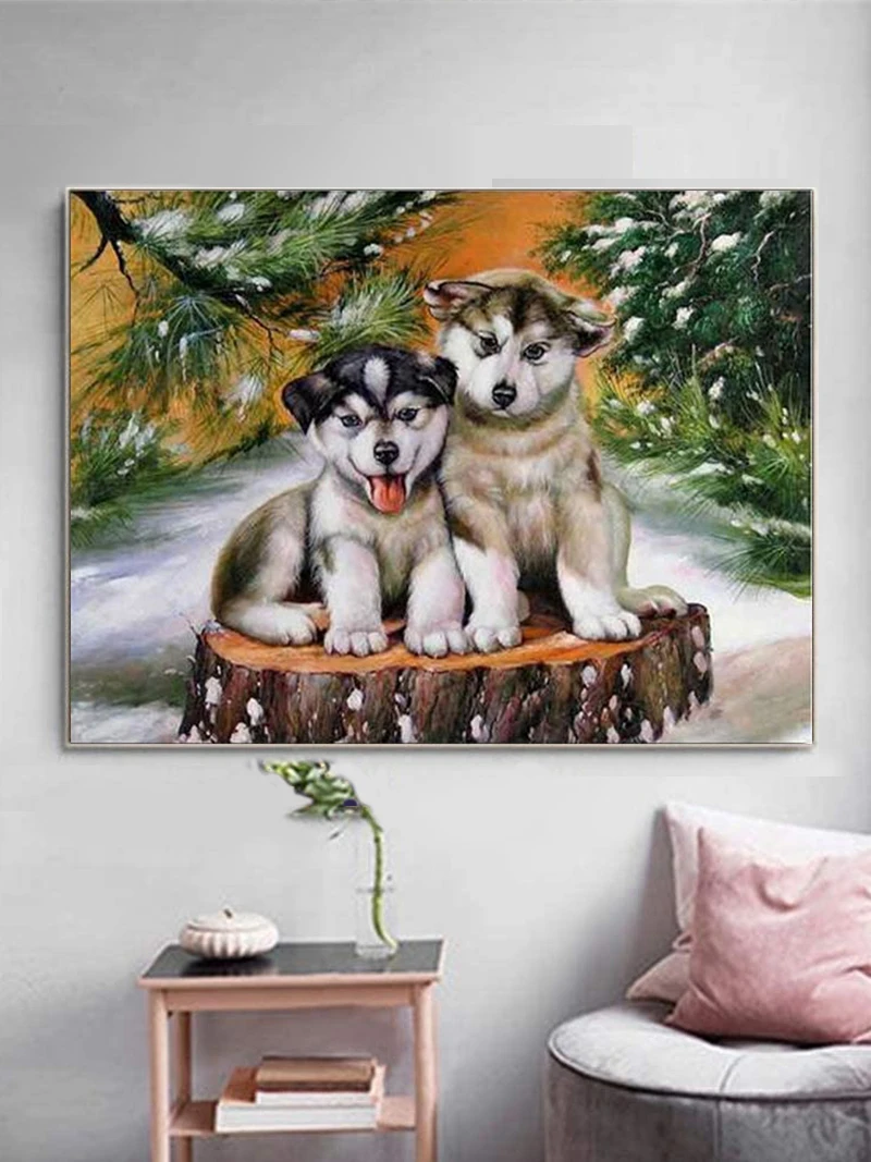 5D алмазная живопись сделай сам, вышивка крестиком, маленькая собака, волк, тень, полная круглая Алмазная вышивка, вышивка стразы, мозаичные изделия
