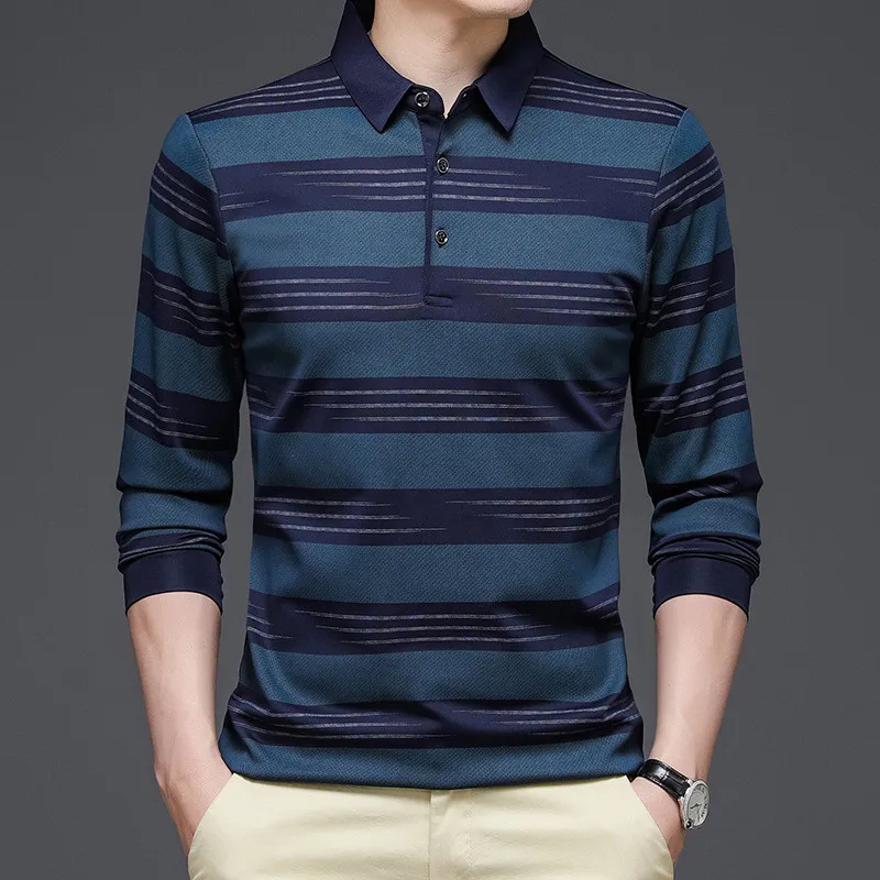 Ymwmhu, Новинка осени 2021, рубашка-поло для мужчин, полосатые рубашки с длинным рукавом, Весенняя уличная одежда, приталенная рубашка-поло, Корейская одежда
