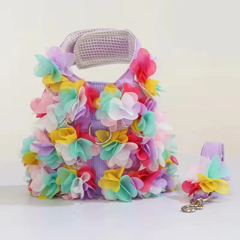Поводок для собак, воздухопроницаемая шлейка с цветами, для домашни...