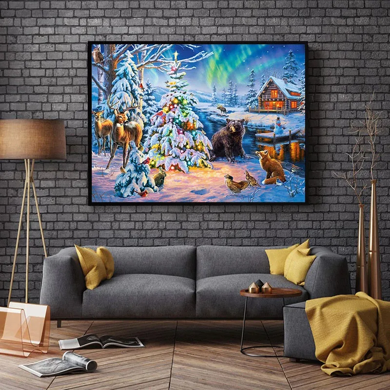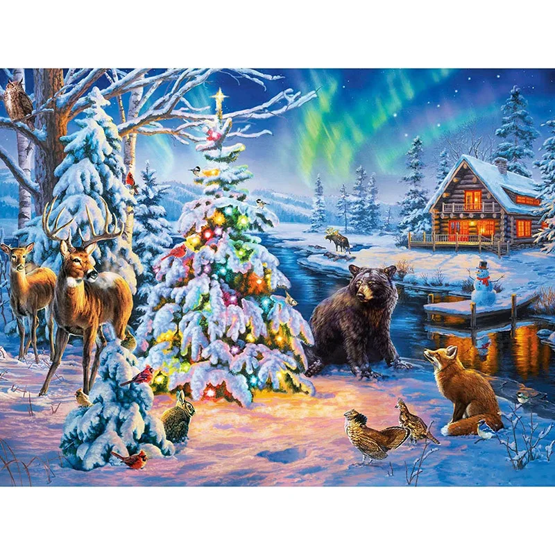 Алмазная живопись с пейзажем, Набор для вышивки крестиком 5D сделай сам с квадратными стразами, рождественские круглые стразы, художественное украшение для дома